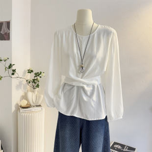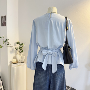 设计感减龄气质小衫 交叉绑带收腰法式 女2025秋季 衬衫 上衣 圆领长袖