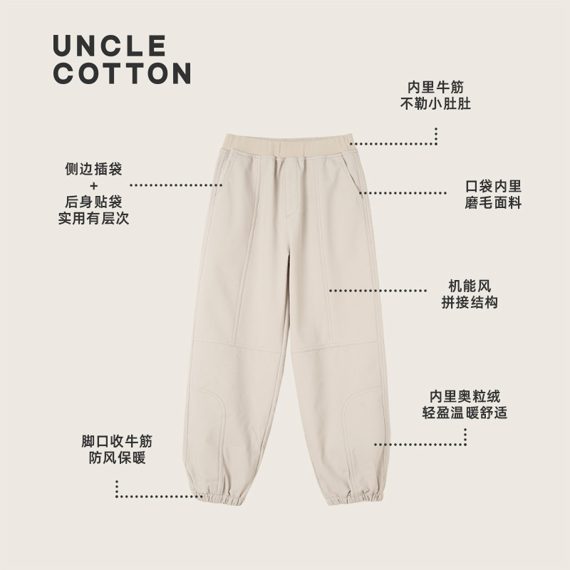 男童 棉叔叔女童加绒收脚口防风保暖休闲裤 绒绒软壳束脚登山裤