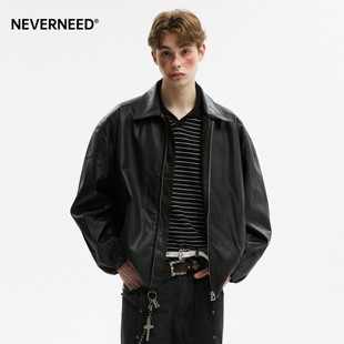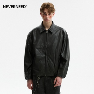 Hualun复古机车软皮衣男外套高街痞帅大学生高级感潮流飞行员夹克