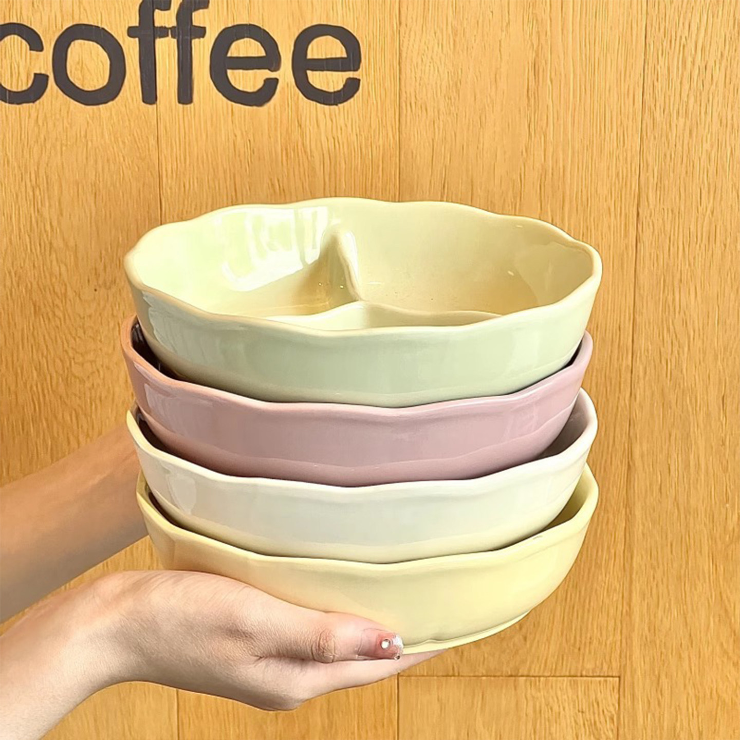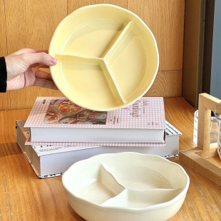 PD.old.奶油风陶瓷分格盘子家用简约加深减脂碗 昌婆 JOJO