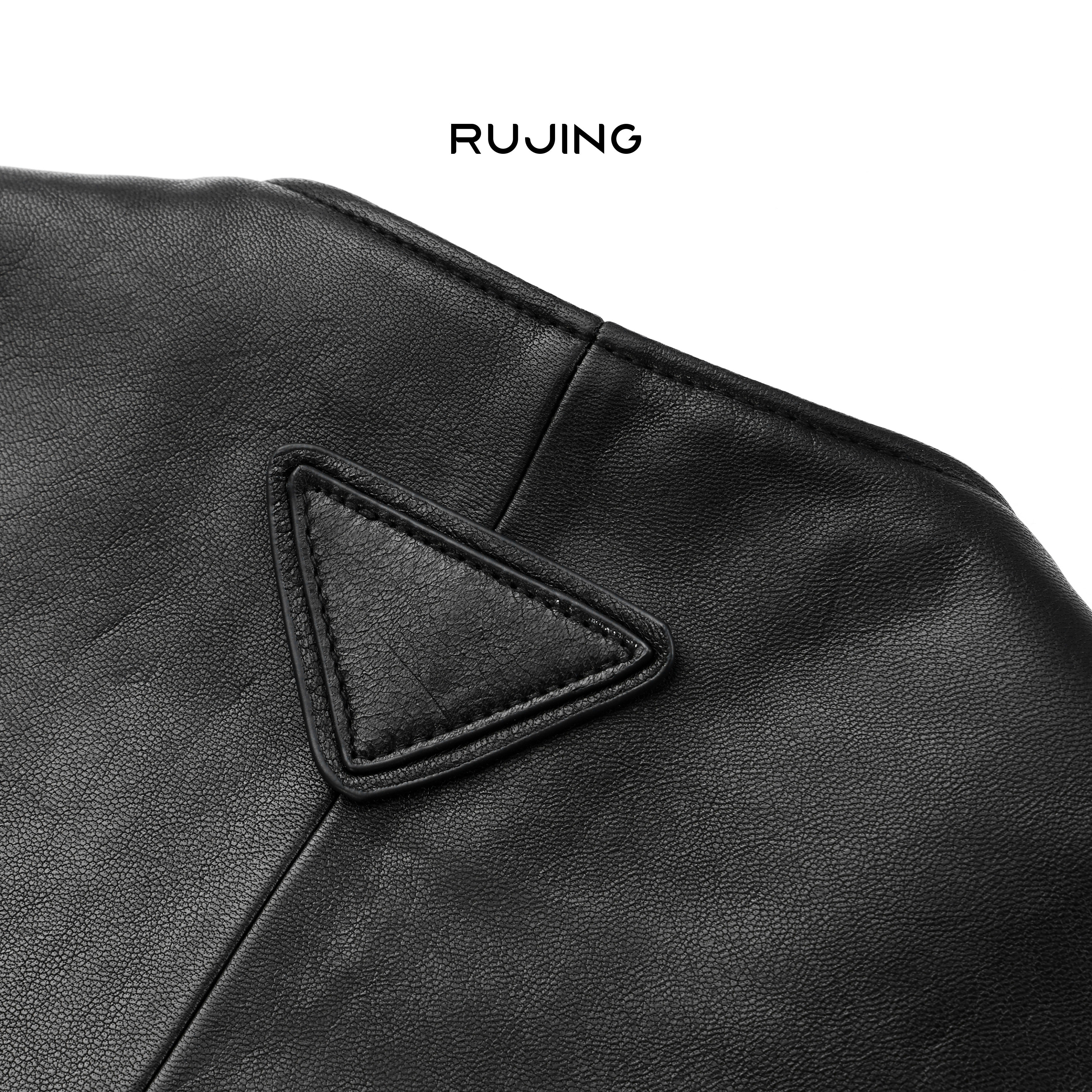 垫肩皮衣夹克男高级感痞帅cleanfit外套 重工设计短款 黑沧社 美式