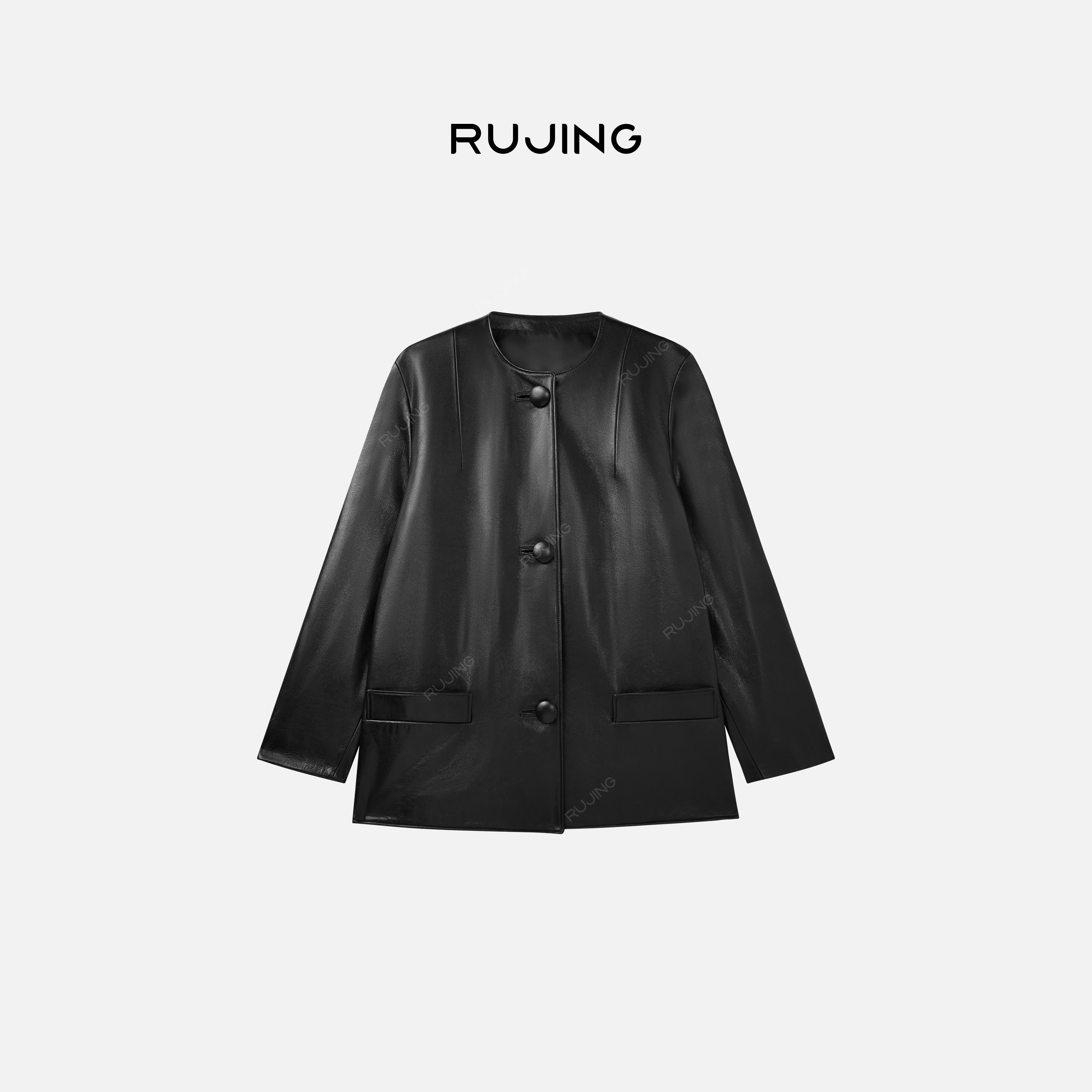 nomnonnomme率性中性合身短款 哑光水洗皮廓形皮衣夹克外套