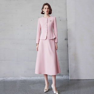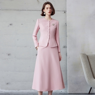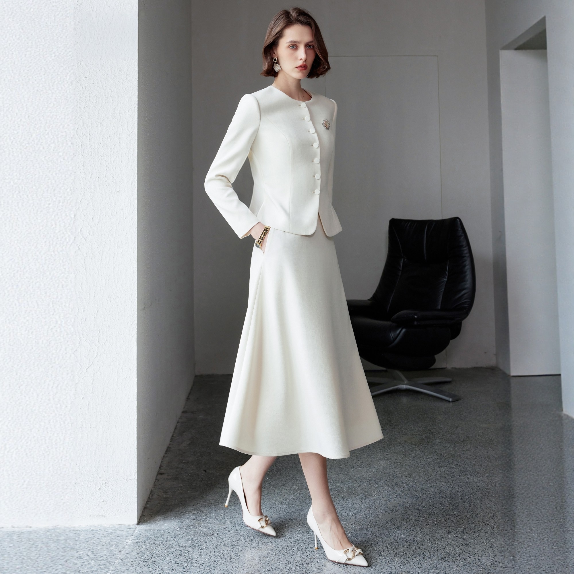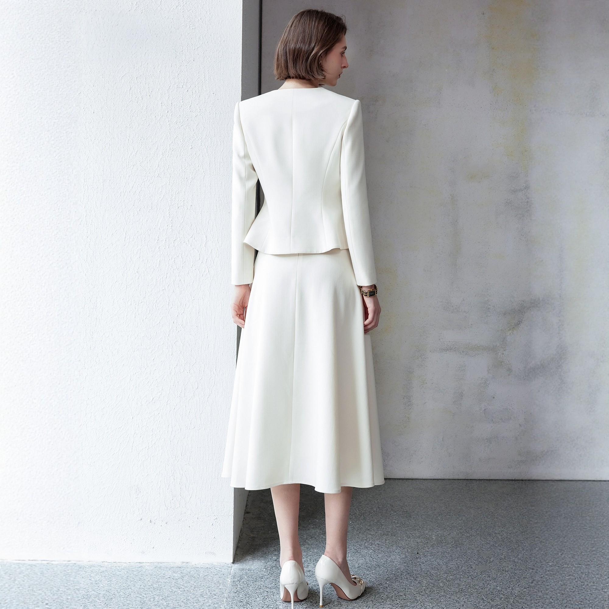 上镜演讲正式 女播音主持人正装 场合工作服 套裙职业套装 米白色西装