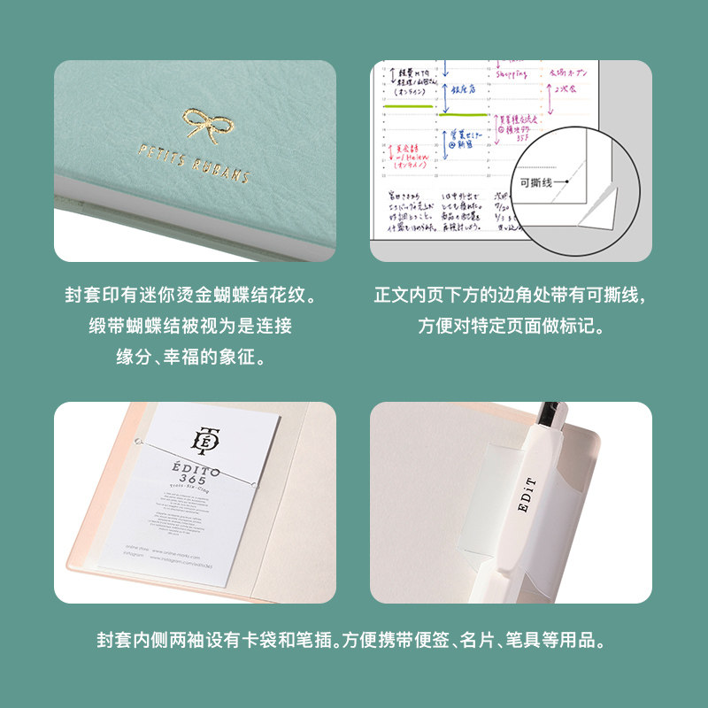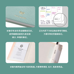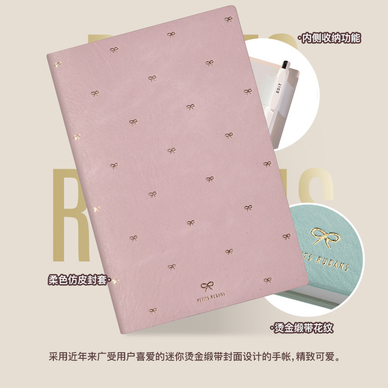 S烫金缎带蝴蝶结印花封面竖式 MARK 时间轴周计划手帐B6变型日程管理笔记本记事本PVC仿皮封皮 2026年