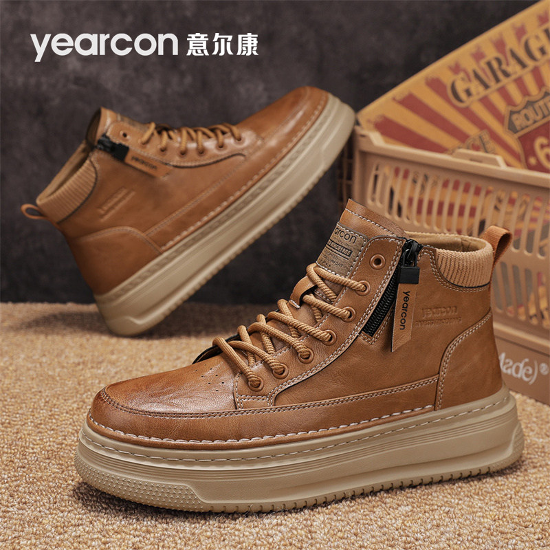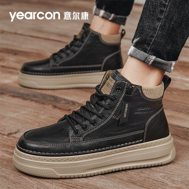 2025新款 男士 冬季 高帮休闲板鞋 马丁靴高级感 加绒棉爆款 意尔康男鞋