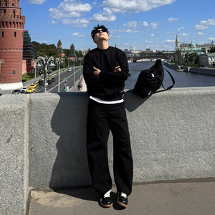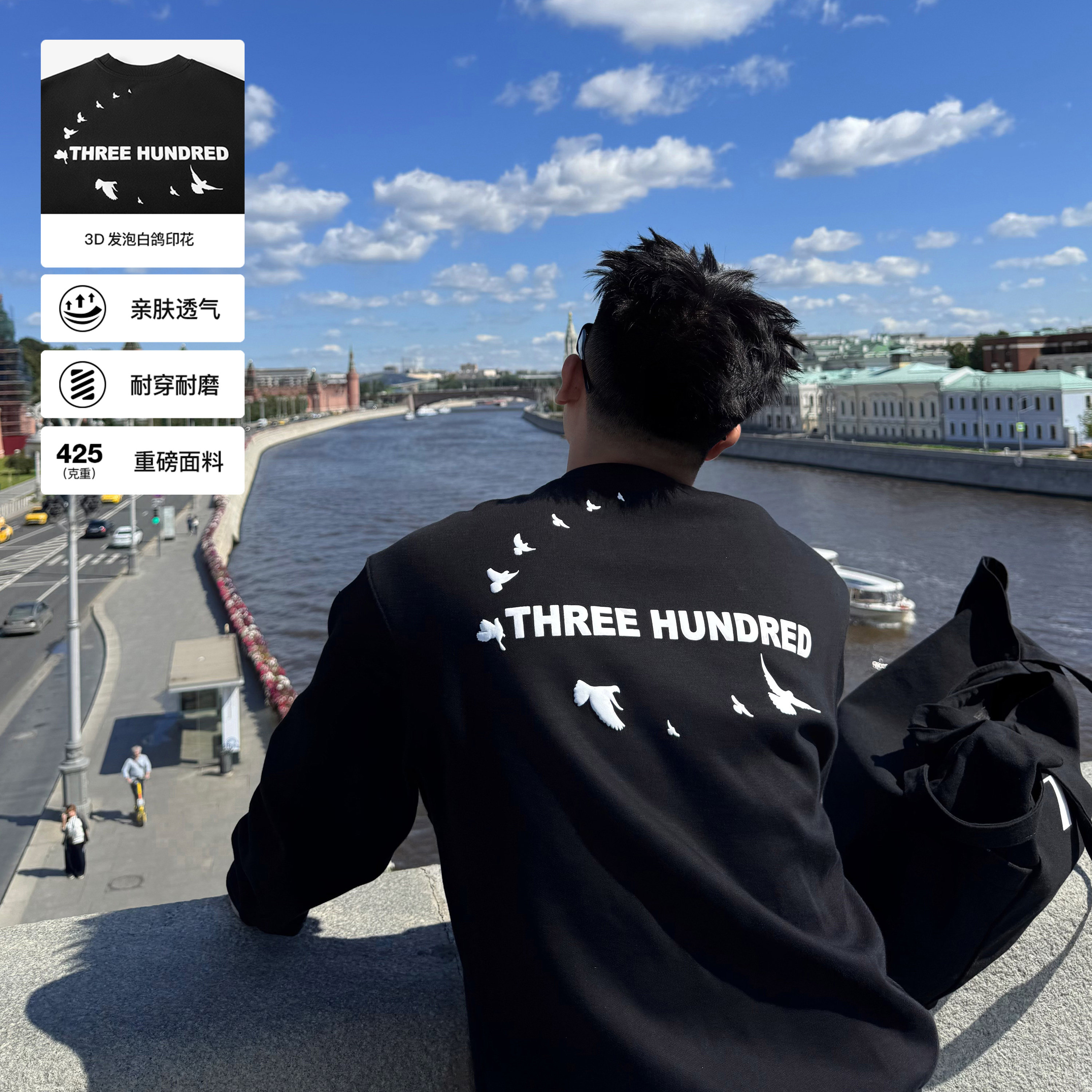 新款 SANBAI叁佰 发泡印花卫衣男秋季 黑色美式 休闲上衣 白鸽宣言