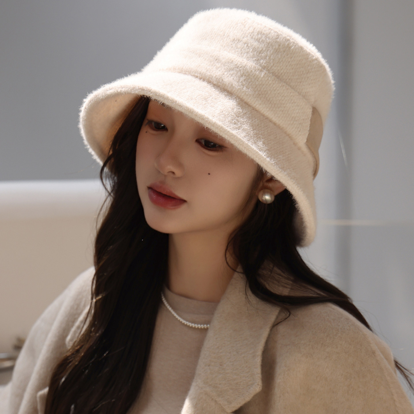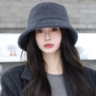 复古百搭毛呢渔夫帽子女秋冬季 宽檐显脸小气质优雅保暖水桶帽 新款