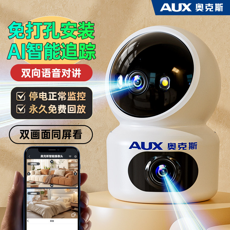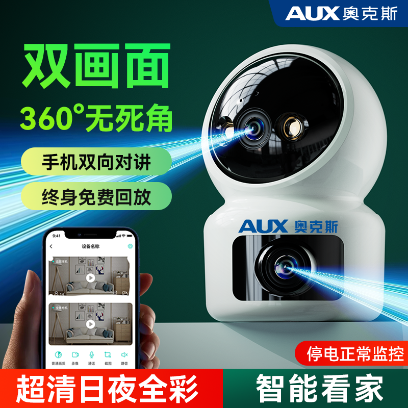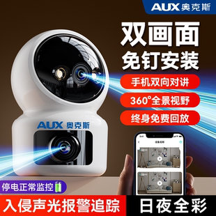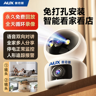奥克斯家用监控器摄像头手机远程360度无死角室内外无需wifi网络