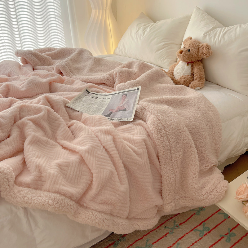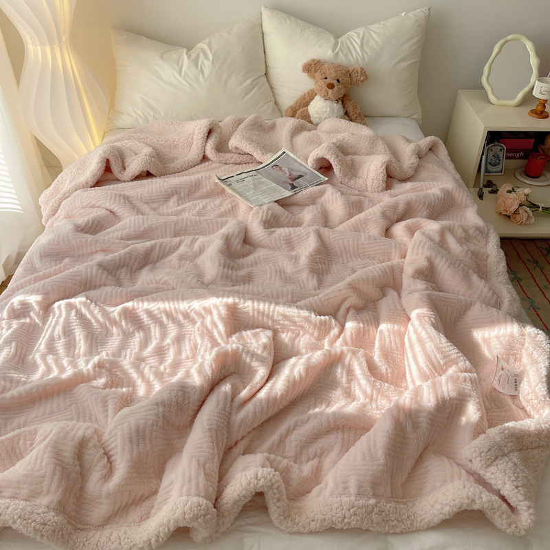 简约提花兔毛绒加厚秋冬羊羔绒毯休闲毛毯学生珊瑚绒披肩沙发盖毯