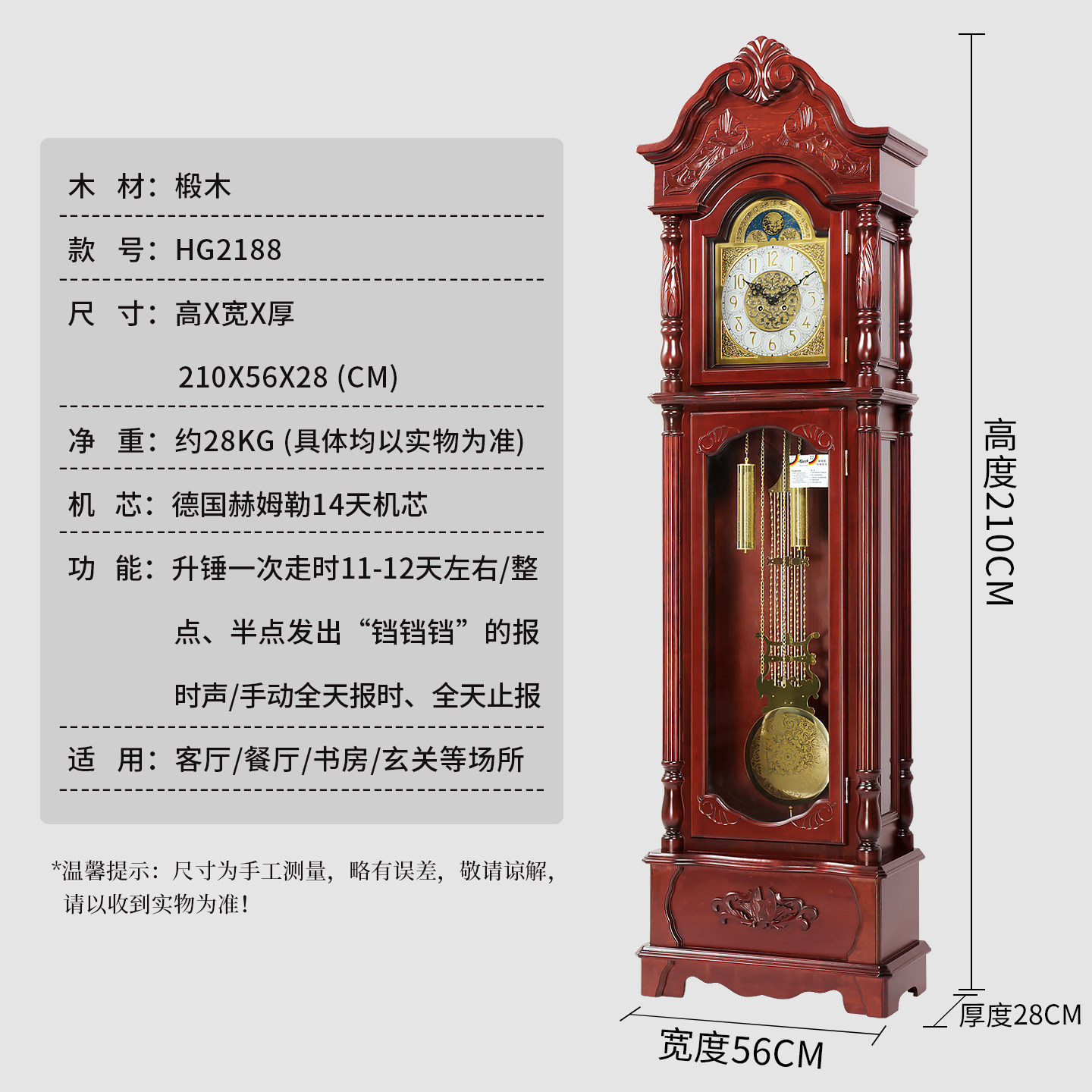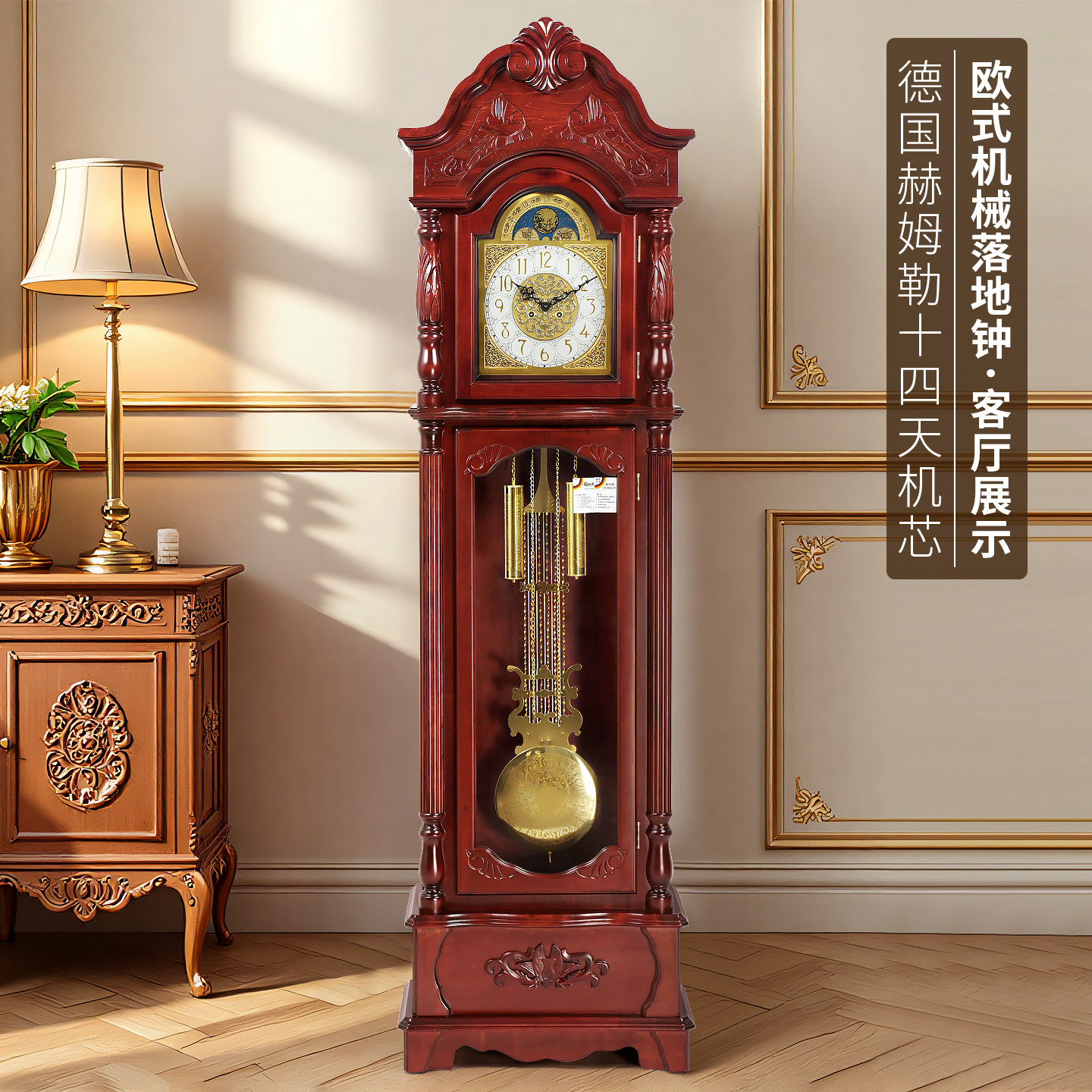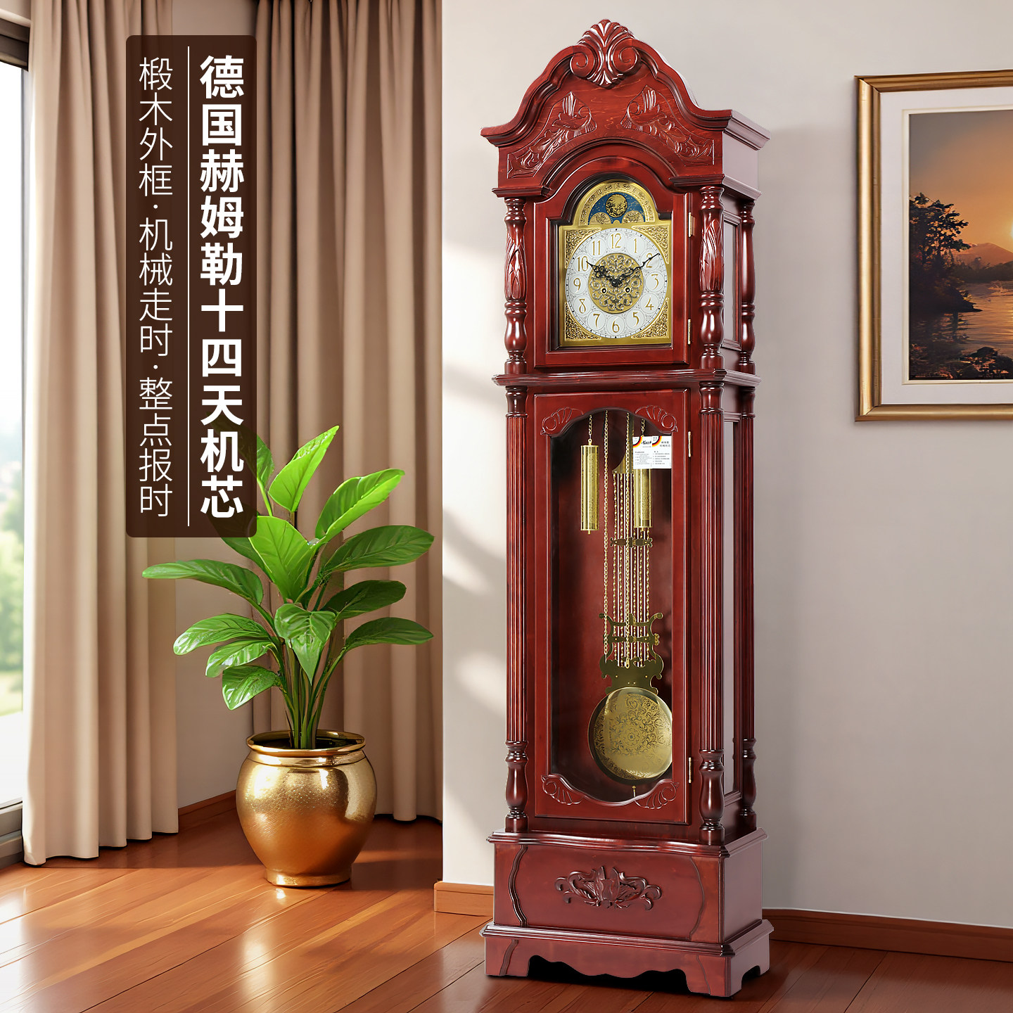 北极星落地钟德国赫姆勒十四天高档实木座钟欧式 客厅立钟机械钟