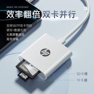 HP惠普读卡器相机sd卡ccd读取器typec连接口适用华为苹果15 16手机电脑两用高速tf内存储卡佳能索尼单反转换