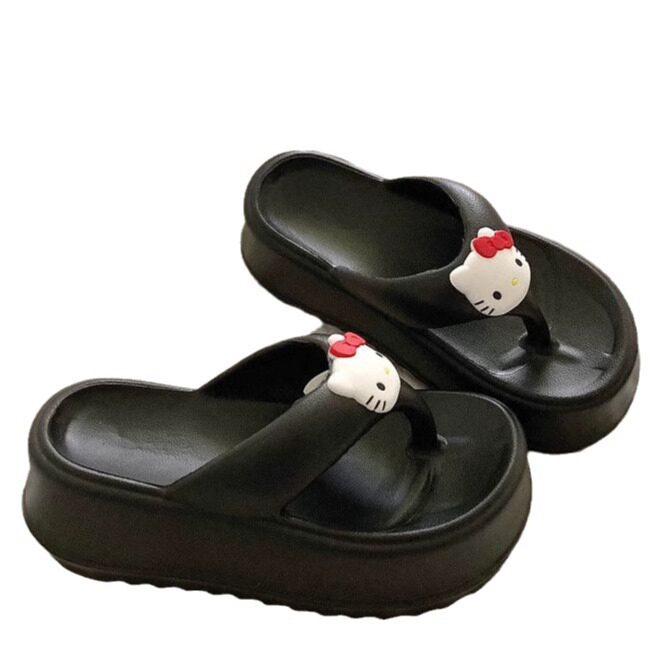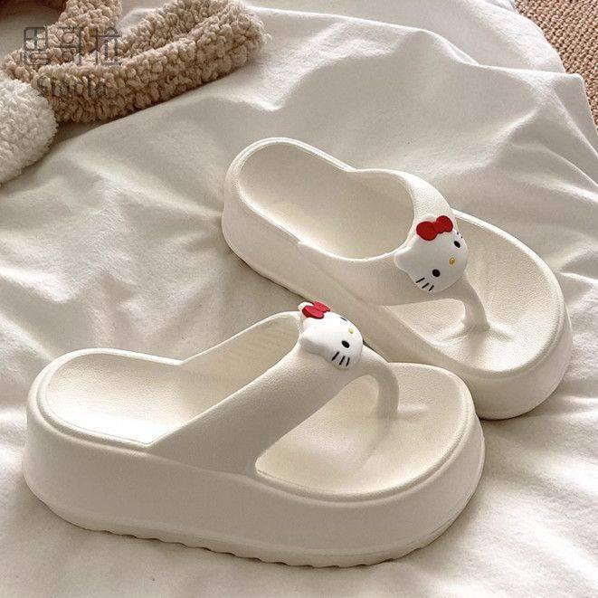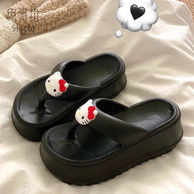 可爱小猫咪 6cm厚底KT猫小众ins人字拖女增高外穿防滑沙滩凉拖鞋