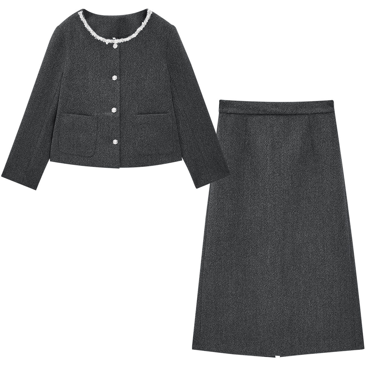 费尔岛两件套装 安妮不火 气质毛织披肩&双排扣呢外套裙女微胖大码