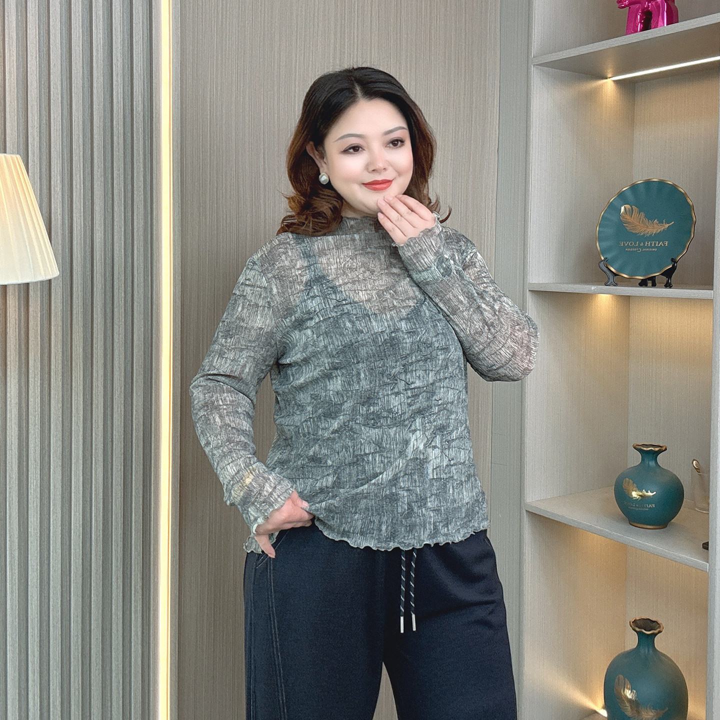 长袖 肌理感别致独特天丝面膜T恤女大码 内搭打底衫 新款 上衣潮 秋季