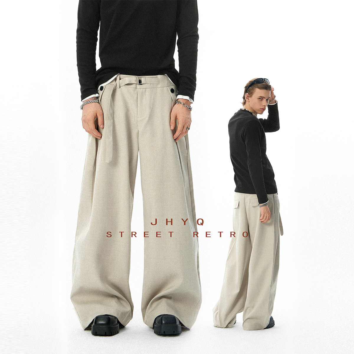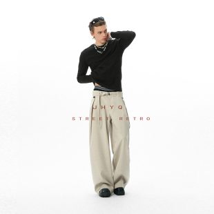子 男宽松直筒立体剪裁垂感阔腿拖地百搭通勤长裤 JHYQ美式 休闲西裤