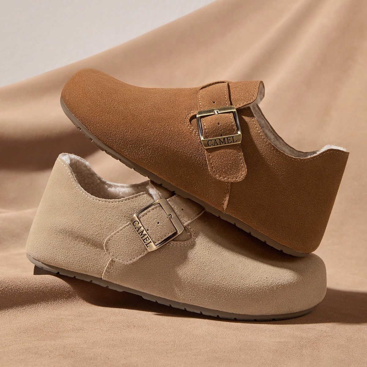 子女勃肯鞋 骆驼女鞋 穆勒鞋 复古真皮圆头百搭休闲平底单鞋 2025新款