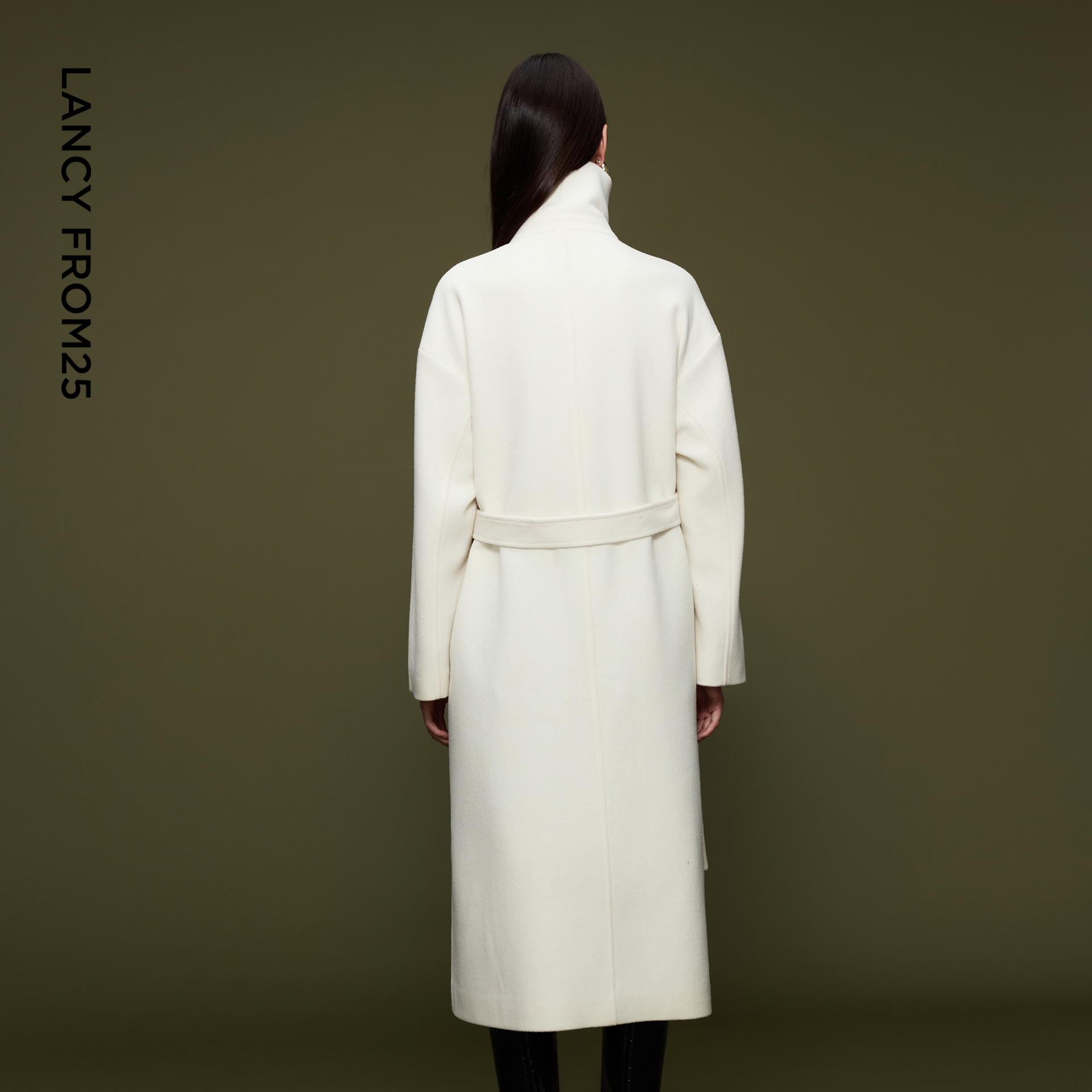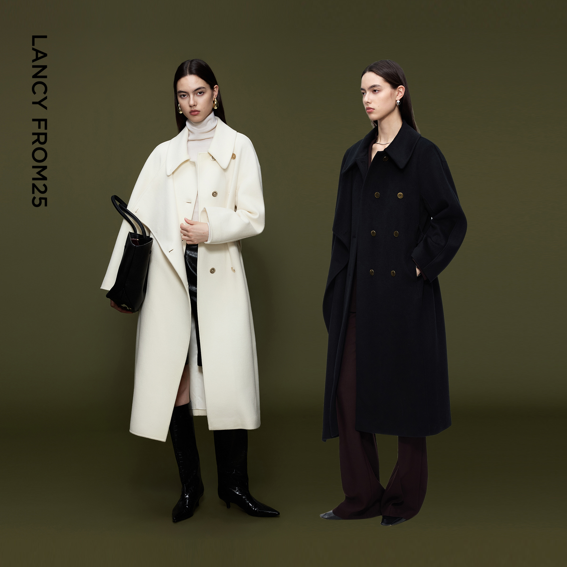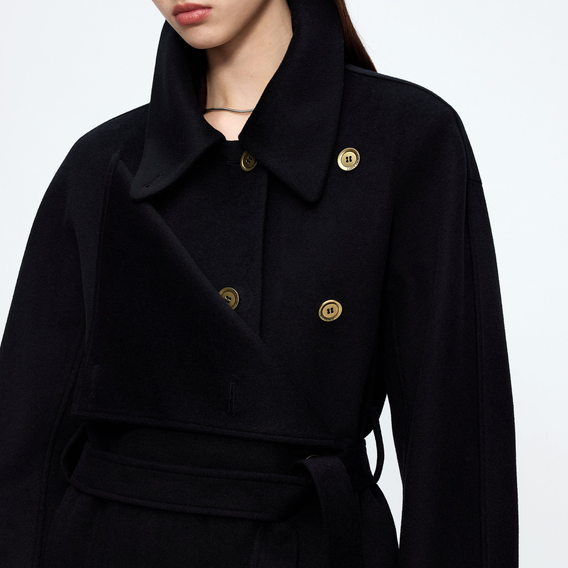 朗姿纯羊毛翻领简约高级感毛呢外套慵懒呢子大衣2025年冬季 新款