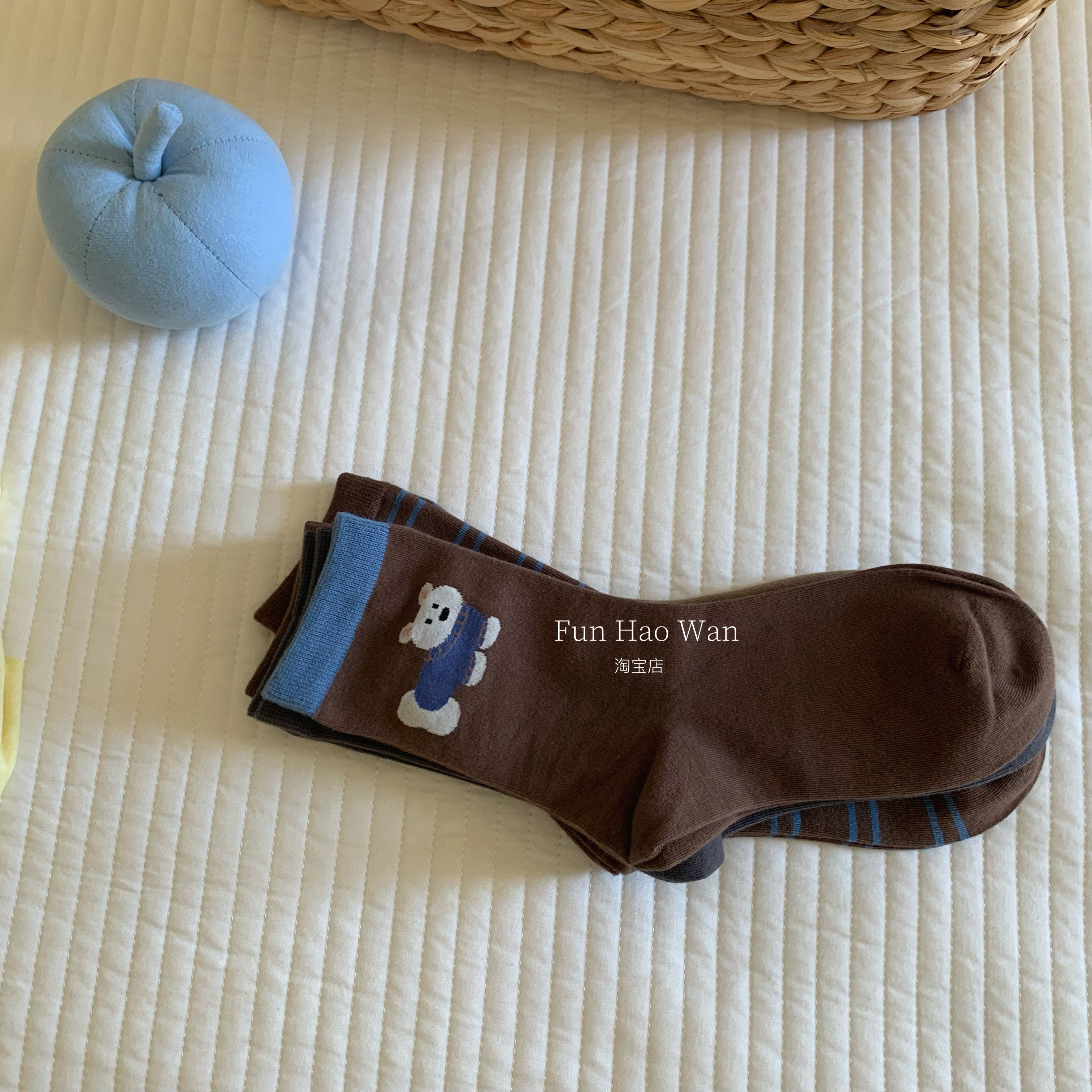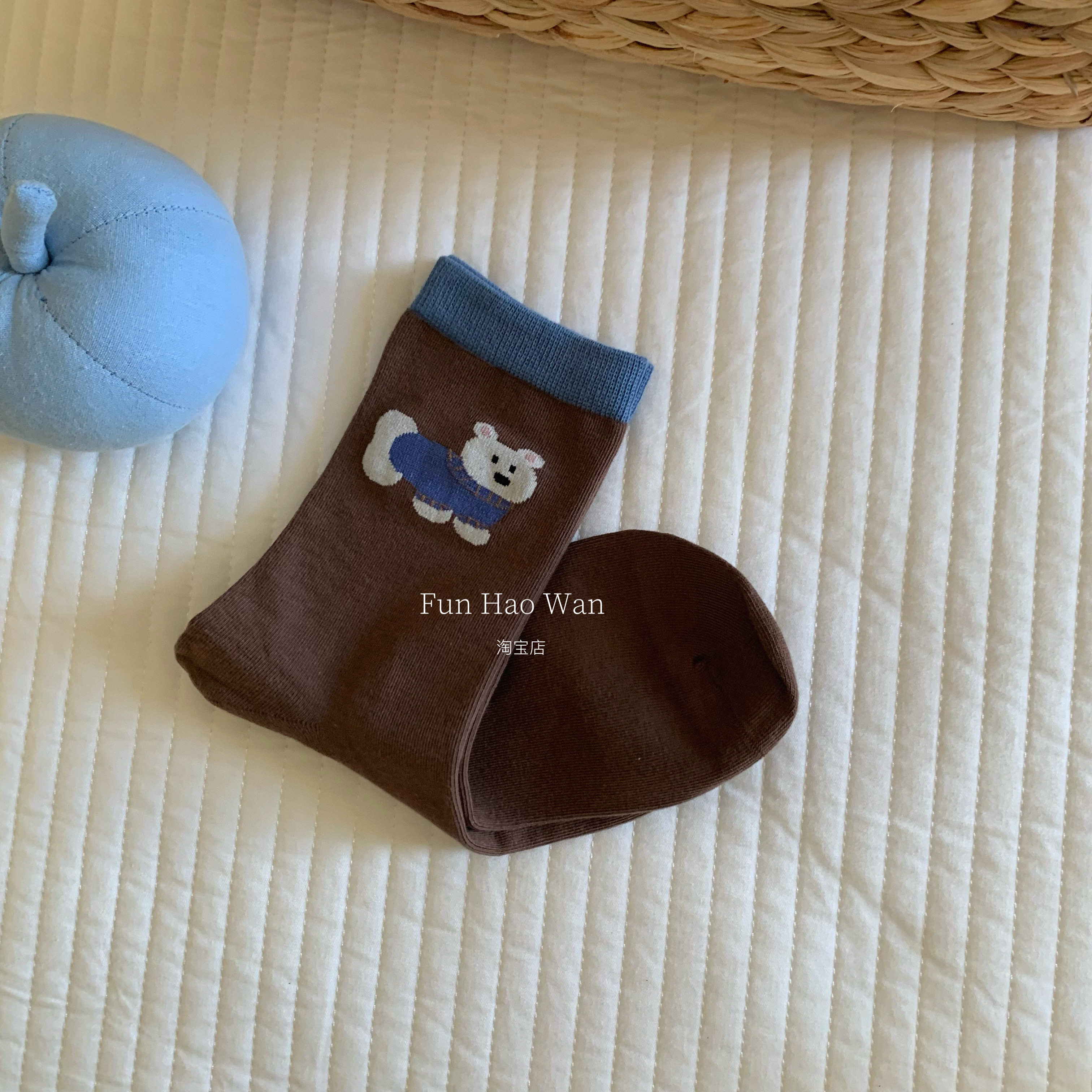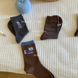 快乐商店~可爱生活咖啡小狗 秋冬咖色系中筒袜 小动物系列棉袜女