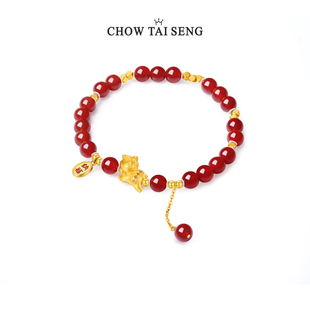 庆祥泰真品朱砂手串女款 官方旗舰店天然和田玉足金黄金手链女 正品
