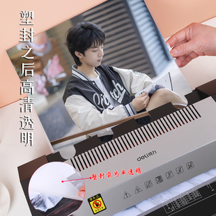 得力防水塑封膜3819照片护卡膜100张7C过塑膜A4照片塑封机专用耗材热缩膜3寸5寸6寸7寸透明相片保护膜过胶膜