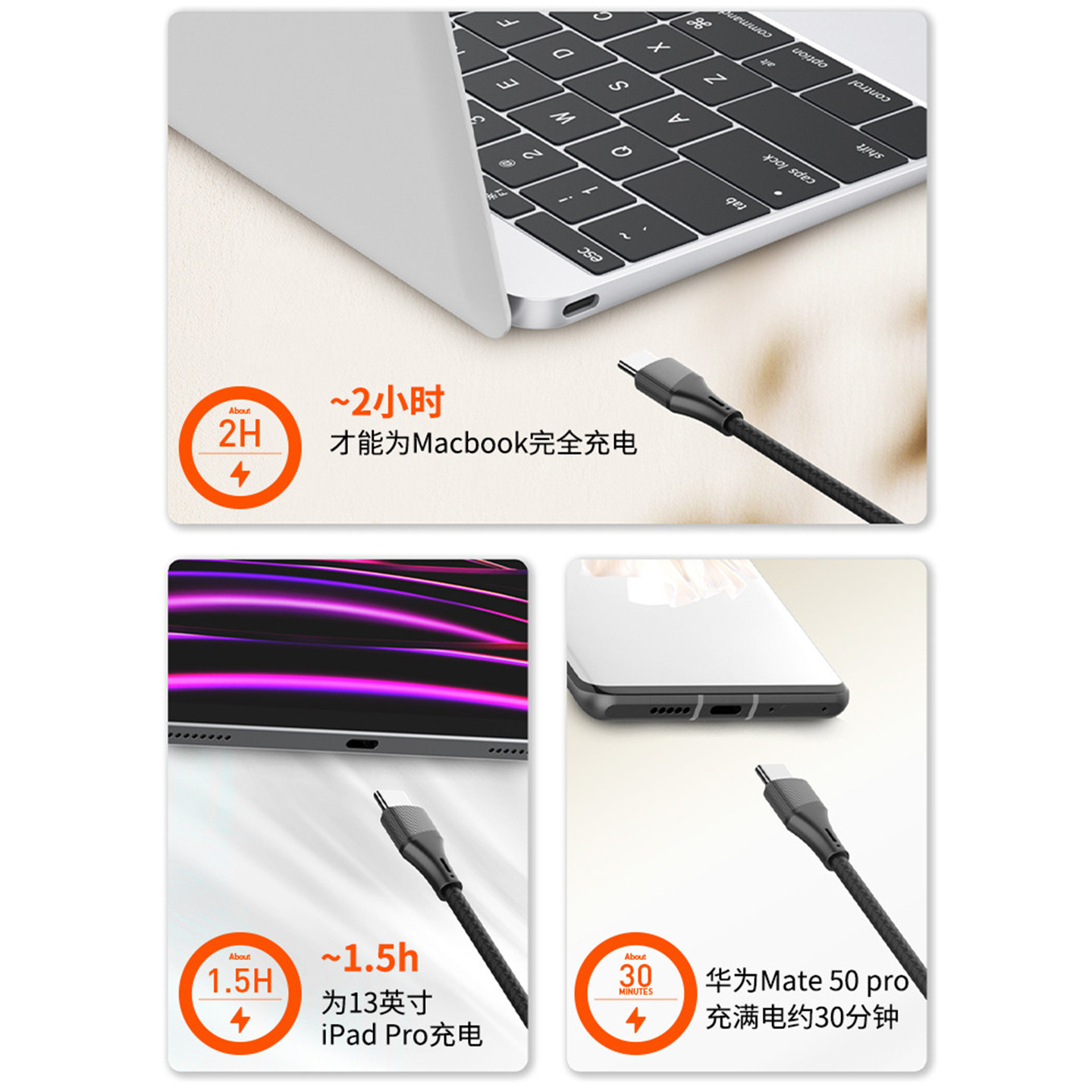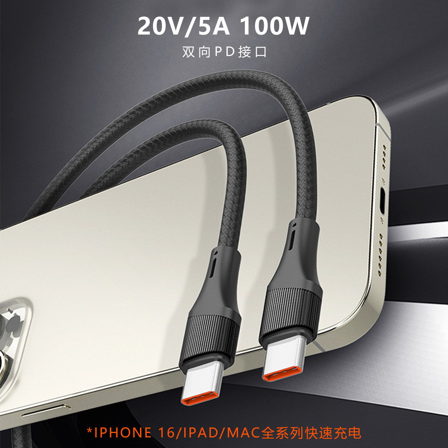 100W超级快充数据线PD快充线兼容iPhone17华为小米三星安卓平板电脑数据头编织线typec数据头手机充电线