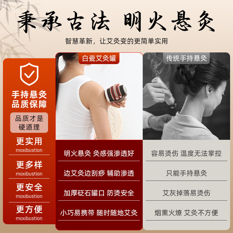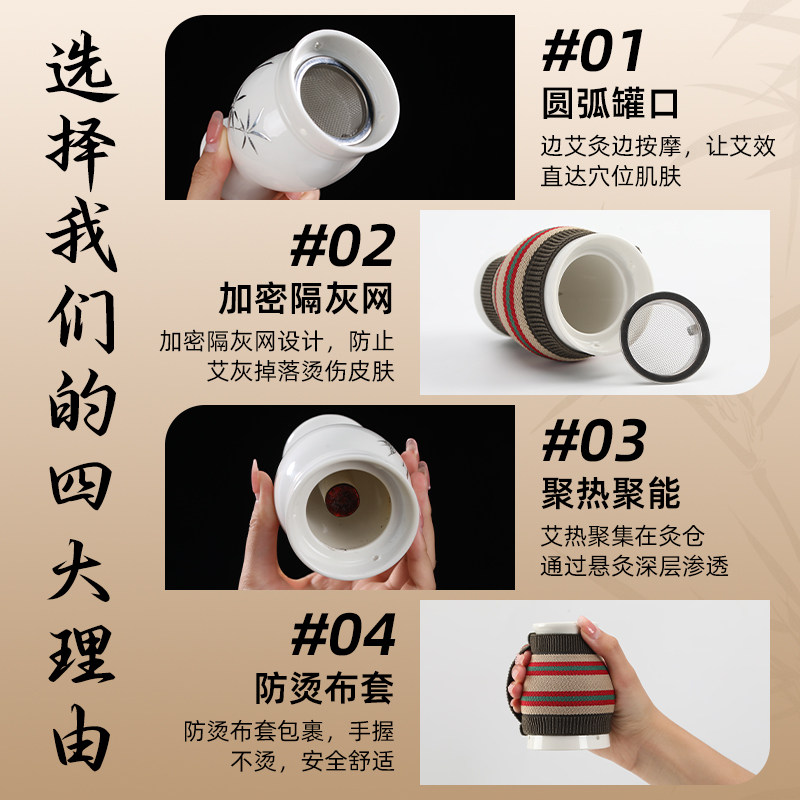 白瓷艾灸罐家用火龙罐按摩温熏调理器全身适用祛湿养颜刮痧熨烫