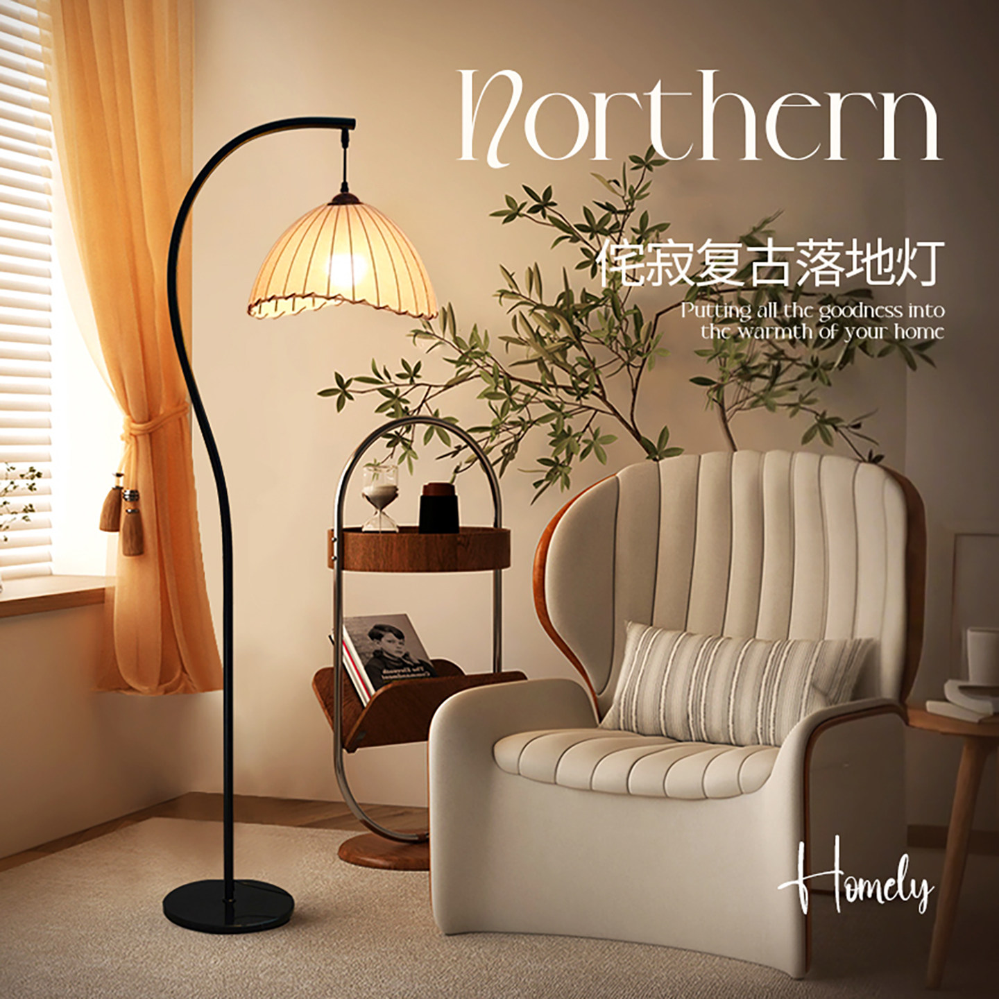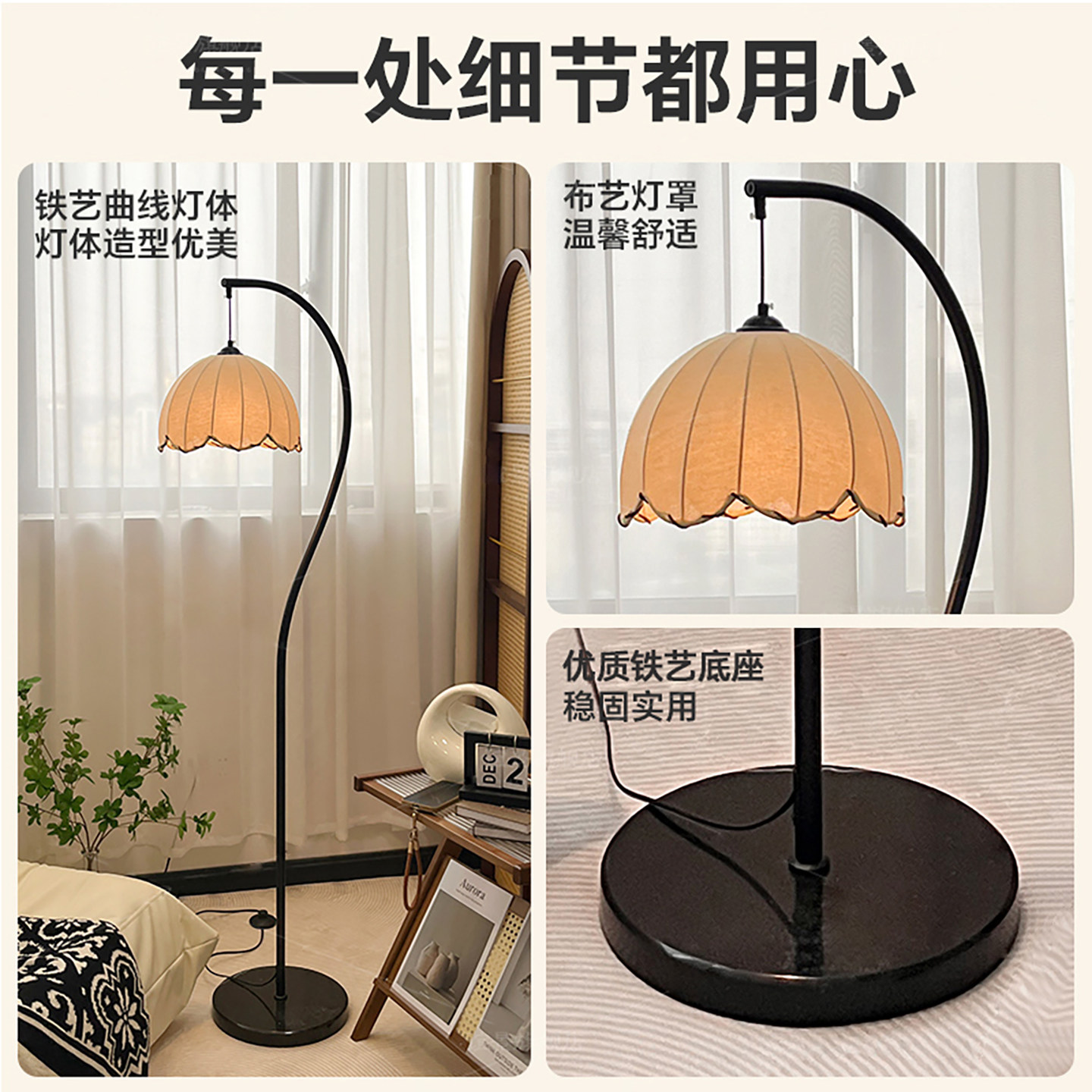 沙发旁钓鱼灯护眼卧室床头落地灯 饰中古风复古中式 宋式 美学卧室装