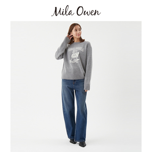 Mila 节日复古滑雪熊提花羊毛混纺毛衣09WNT255134 Owen25秋冬新品