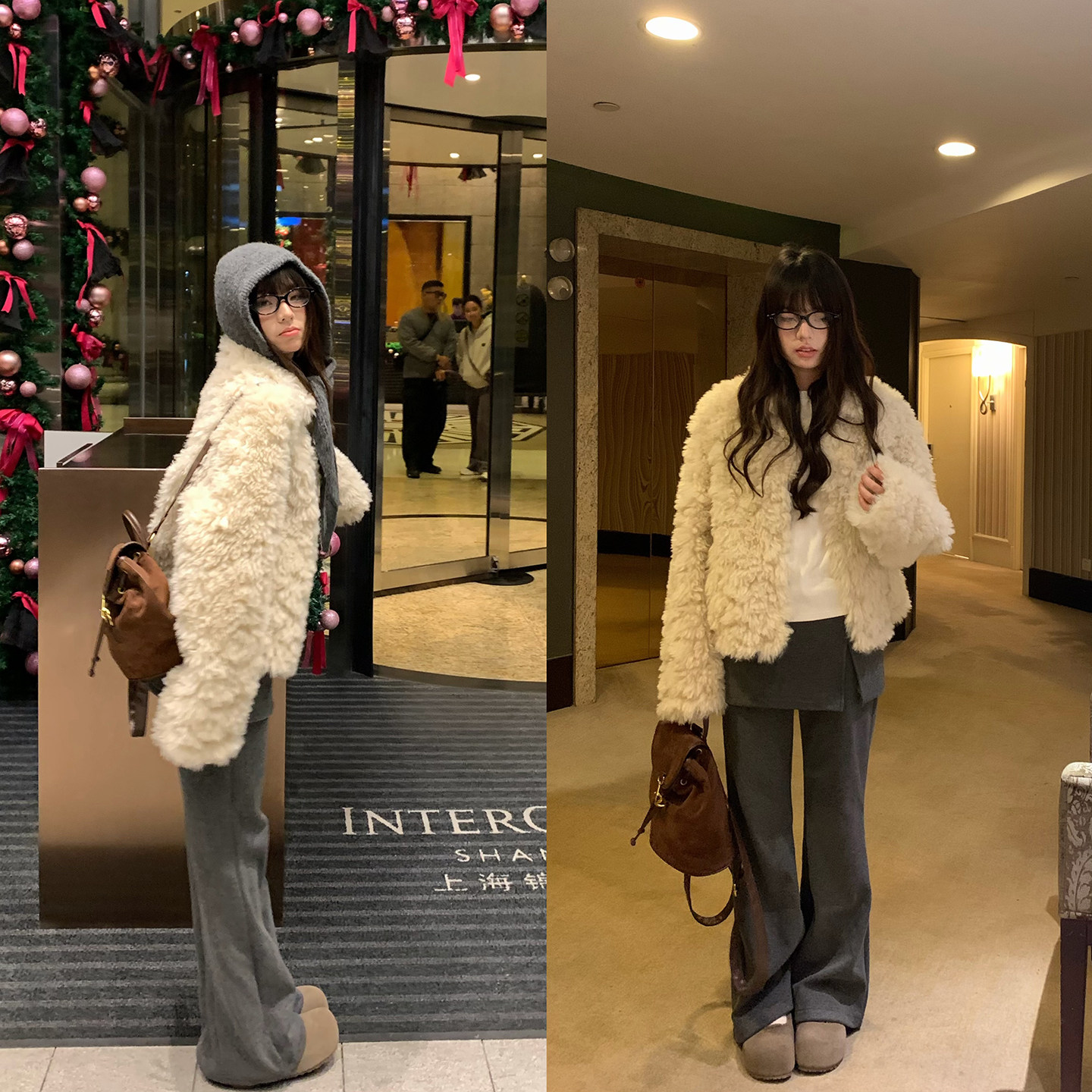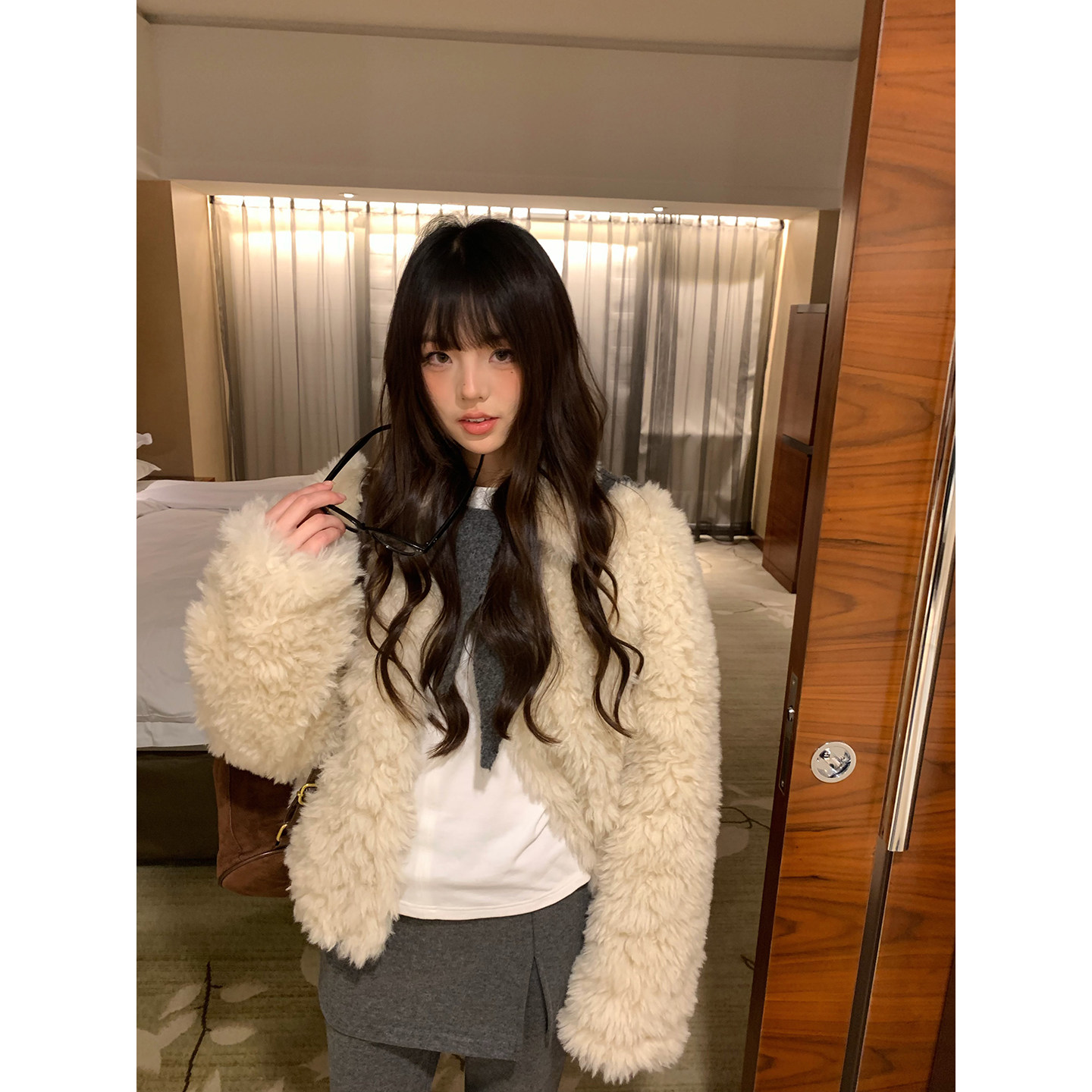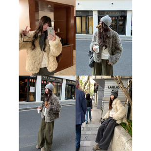 荒荒家高级富贵感翻领长毛外套2025冬季 保暖软糯绒茸仿皮草女 新款