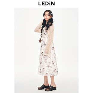 新款 乐町2025秋季 废土风吊带印花连衣裙C2FAE2532 商场同款