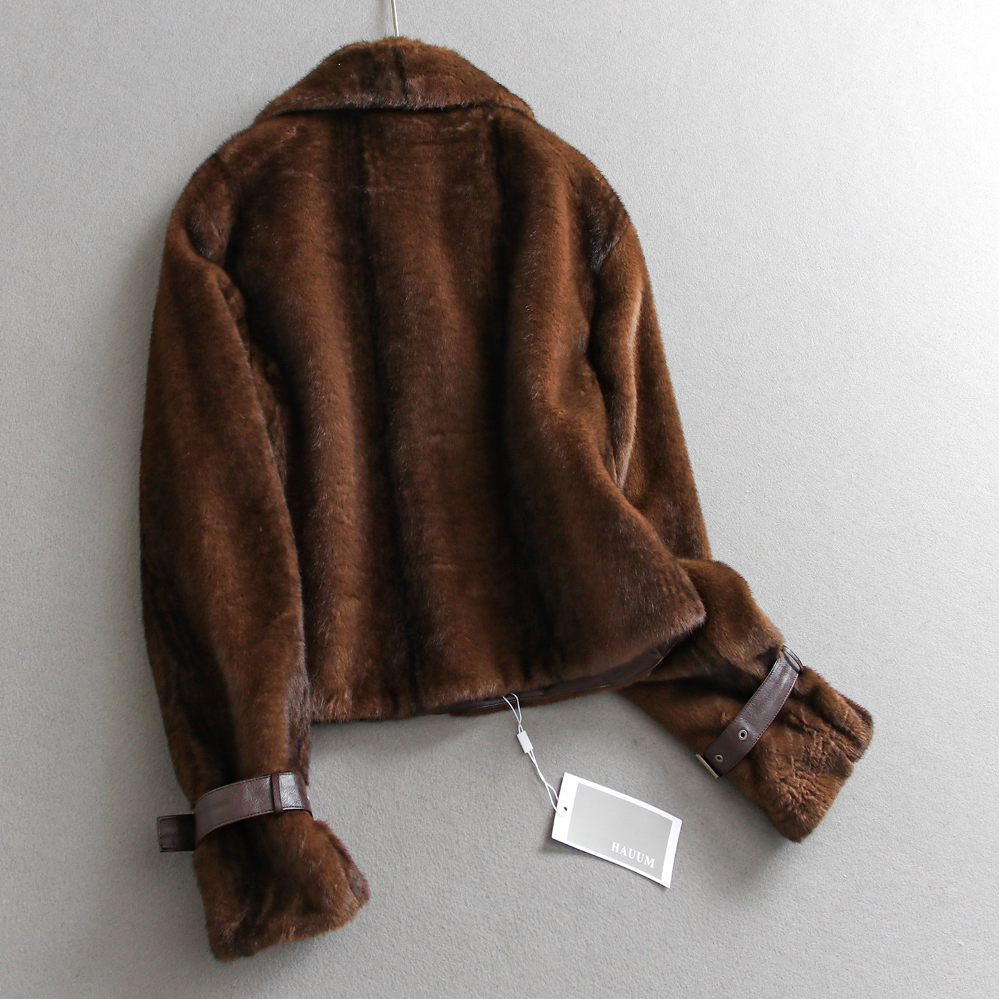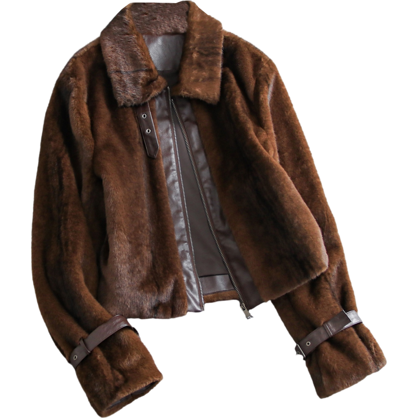 顺滑毛绒仿皮草温暖舒适PU拼接翻领高街时髦宽松长袖 外套Q274 女装