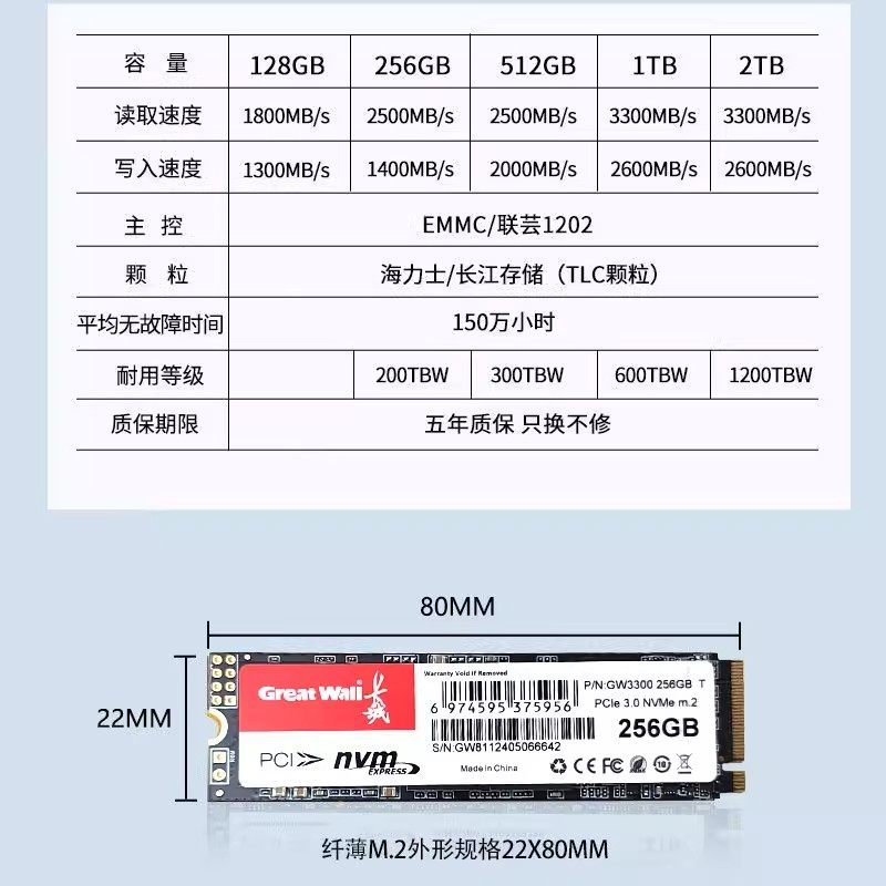长城GW3300M2固态硬盘NVMe协议台式 系统 机笔记本电脑固态硬盘预装