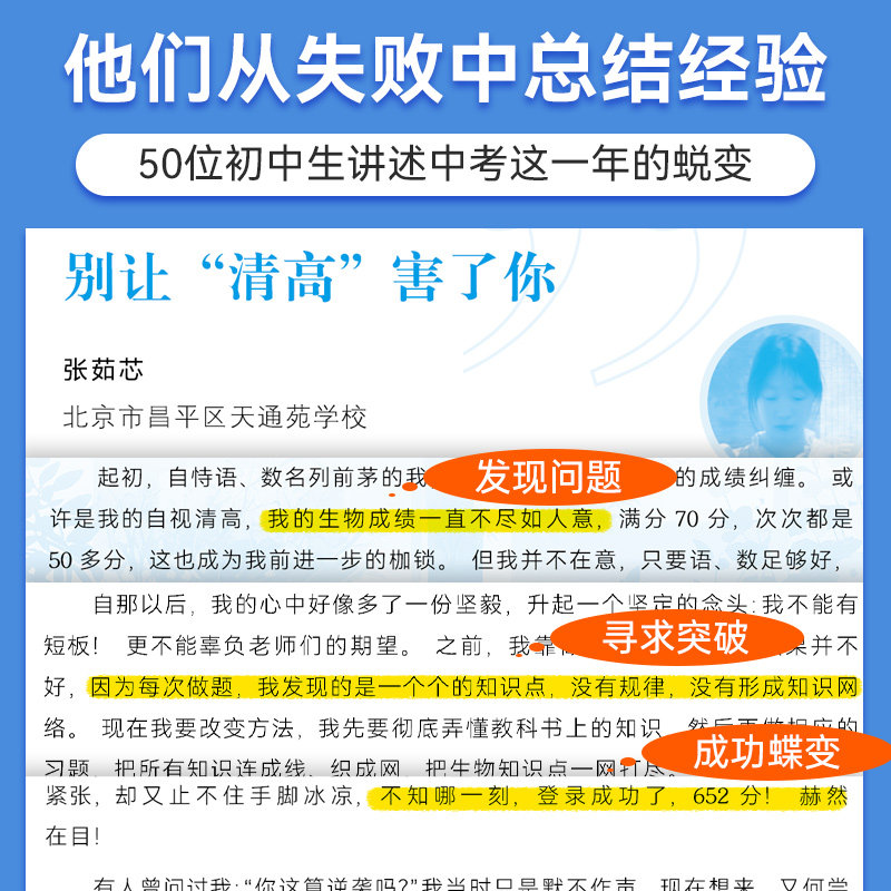 逆袭历程故事全国通用书籍学霸加油鸡汤语录初中学习方法学渣破茧成蝶系列自我励志课外读物 中考蝶变记50位初中生 抖音同款