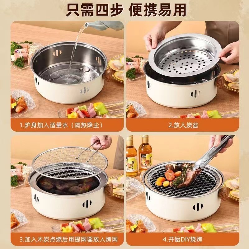 希箔士一次性烧烤炉围炉煮茶家用室内外烤火炉套装 烧烤架碳便携式