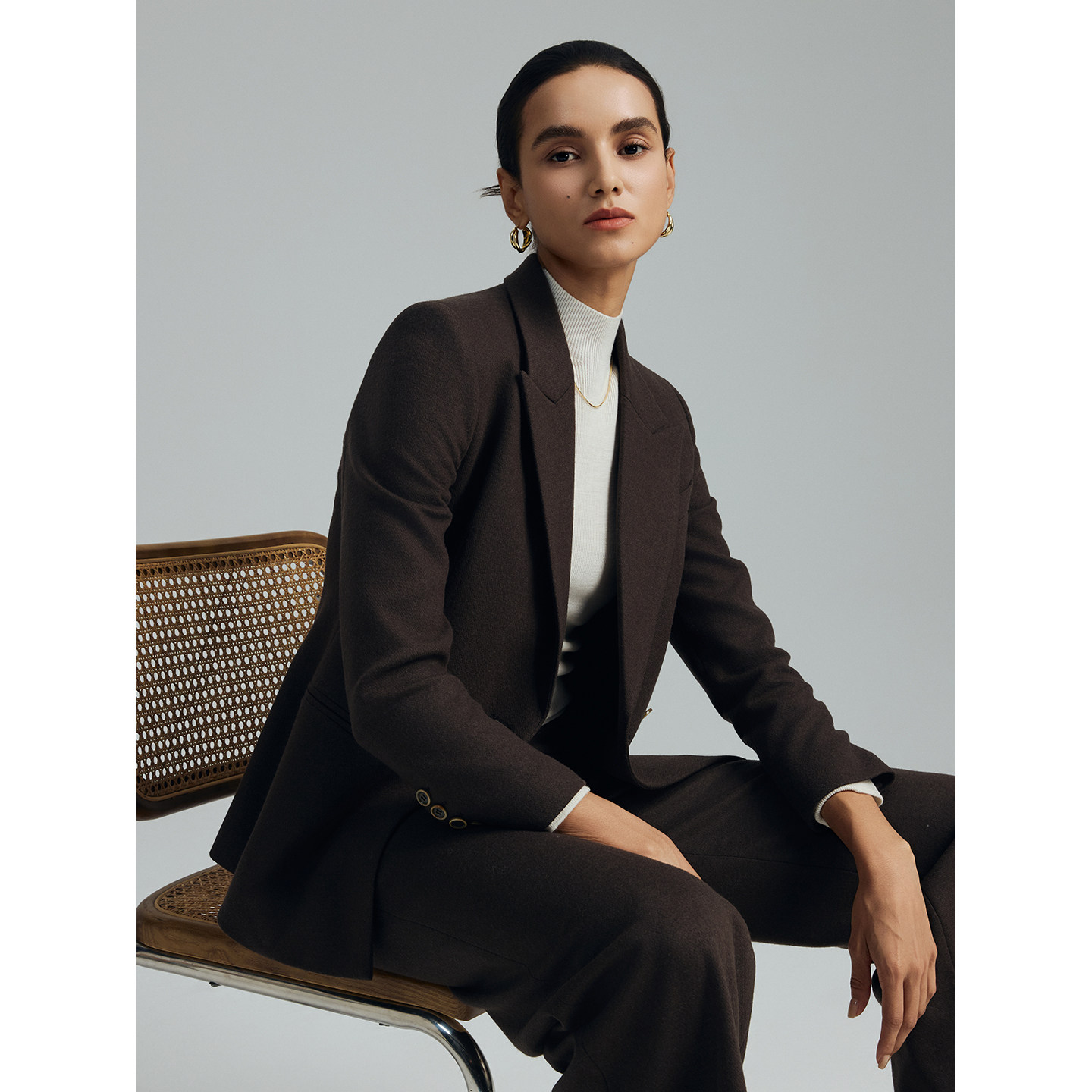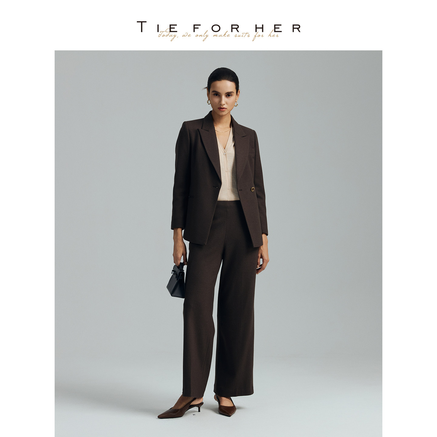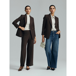 外套上衣直筒裤 羊毛一粒扣简约通勤西装 女 浓郁摩卡 TieForHer