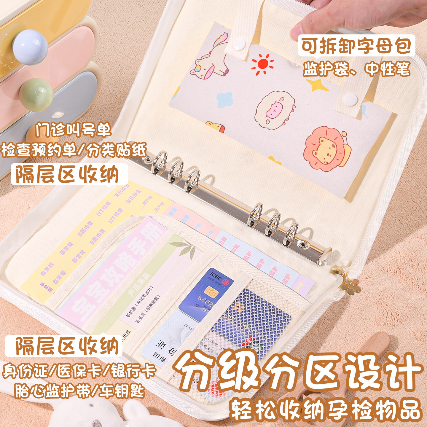 产检孕检收纳册带拉链包产检报告单收纳册马宝宝孕期档案册活页收纳包文件夹孕妇初期用品产检手册资料记录册