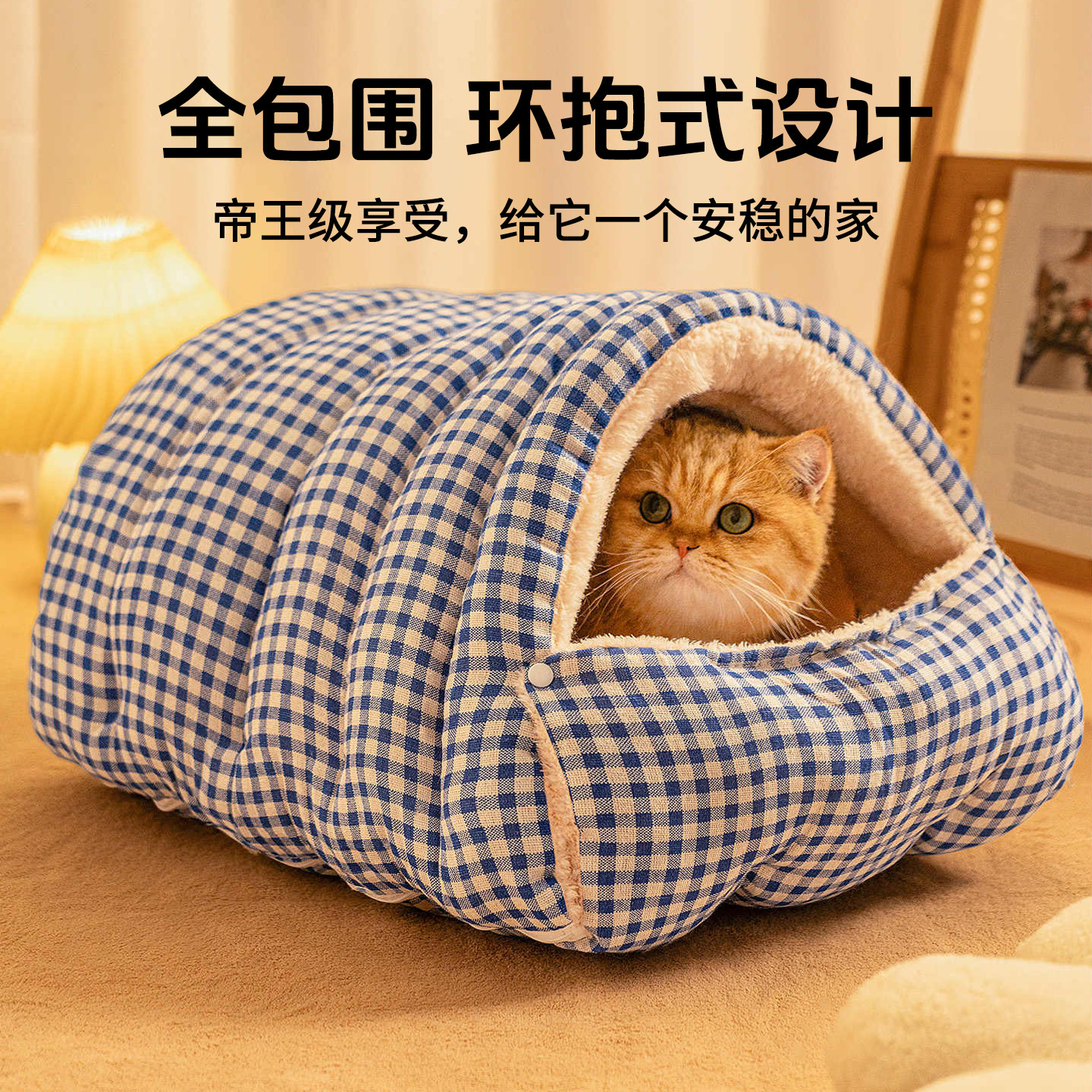 猫窝冬加厚半封闭式 通用可拆洗加大保暖猫屋睡袋狗窝宠物用品 四季