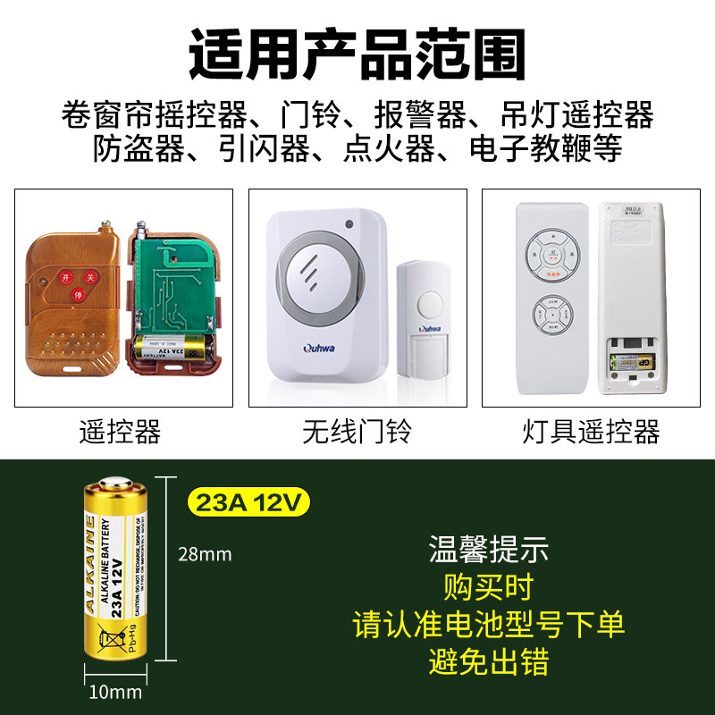 23a12v遥控器电池27A12V电动车库卷闸帘门红外防盗引闪器门铃遥控器23安12伏碱性小号电子干电池电动风扇开关