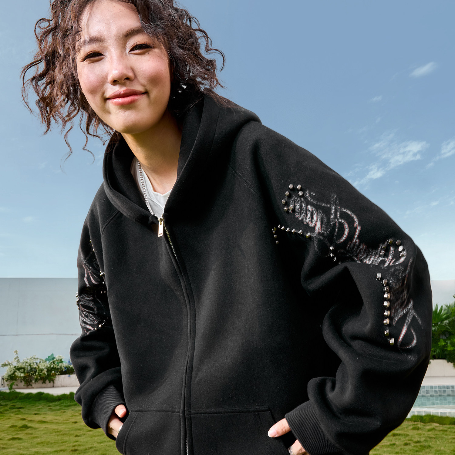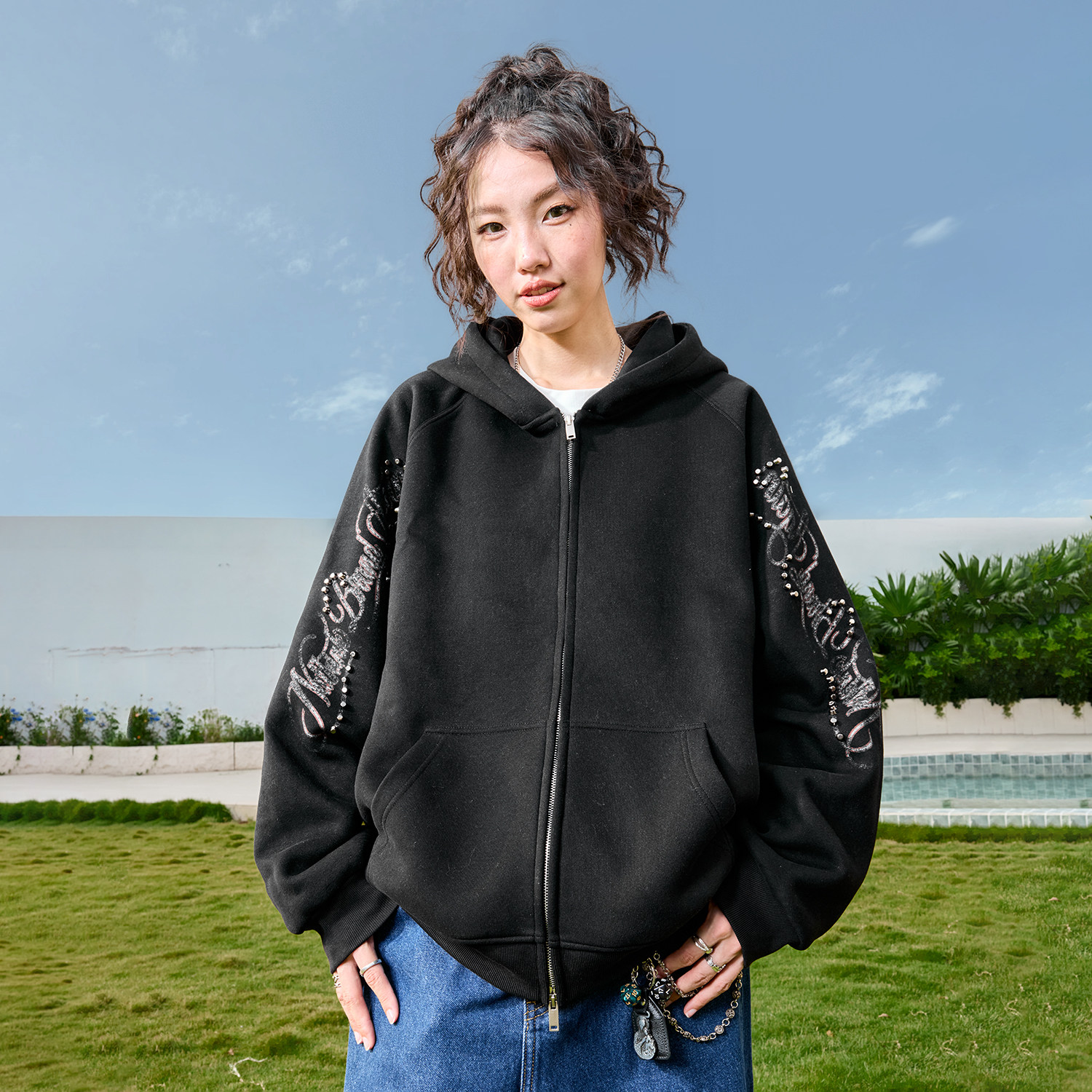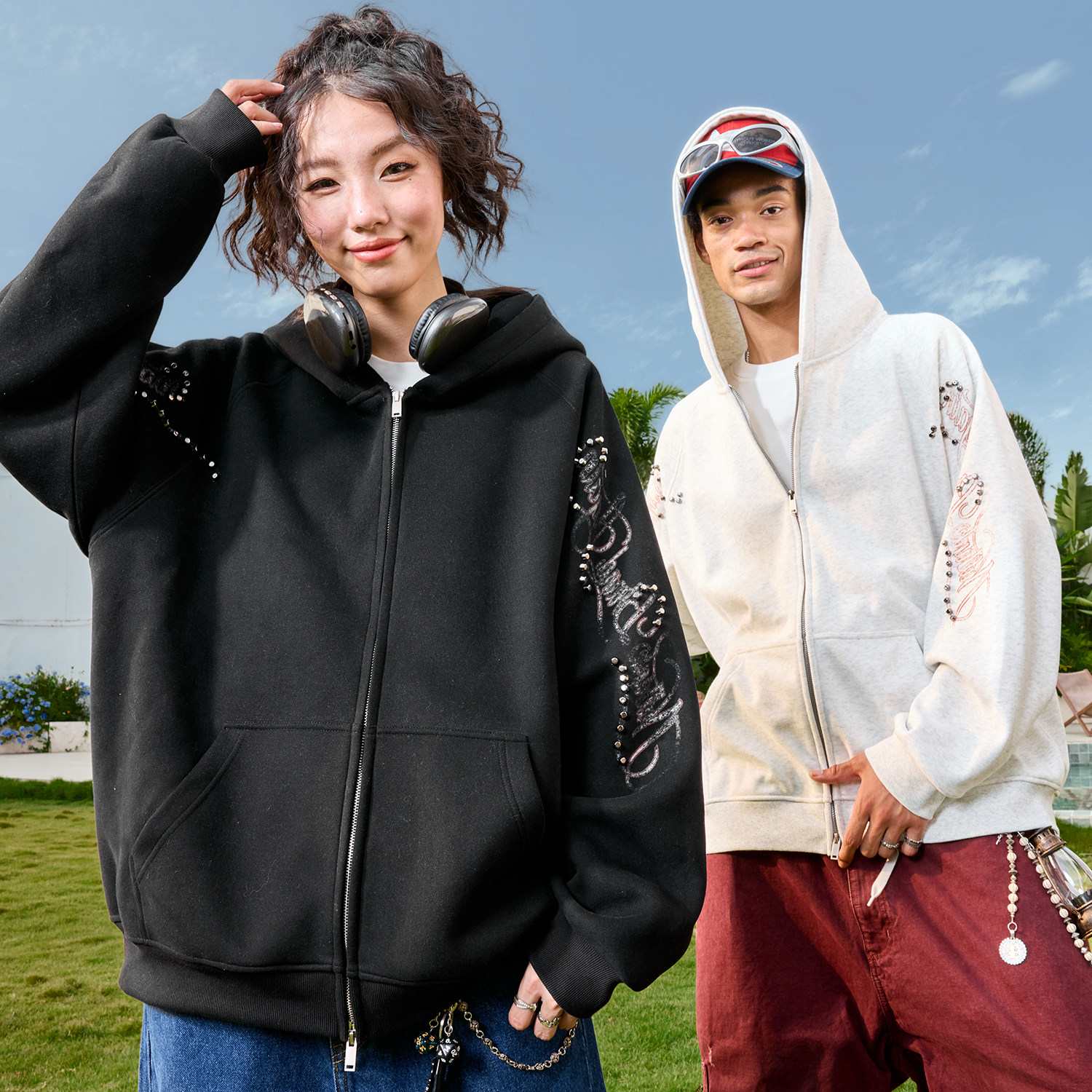 加绒加厚cleanfit外套 2025新款 查尔斯桃心 纯色卫衣男连帽春秋季
