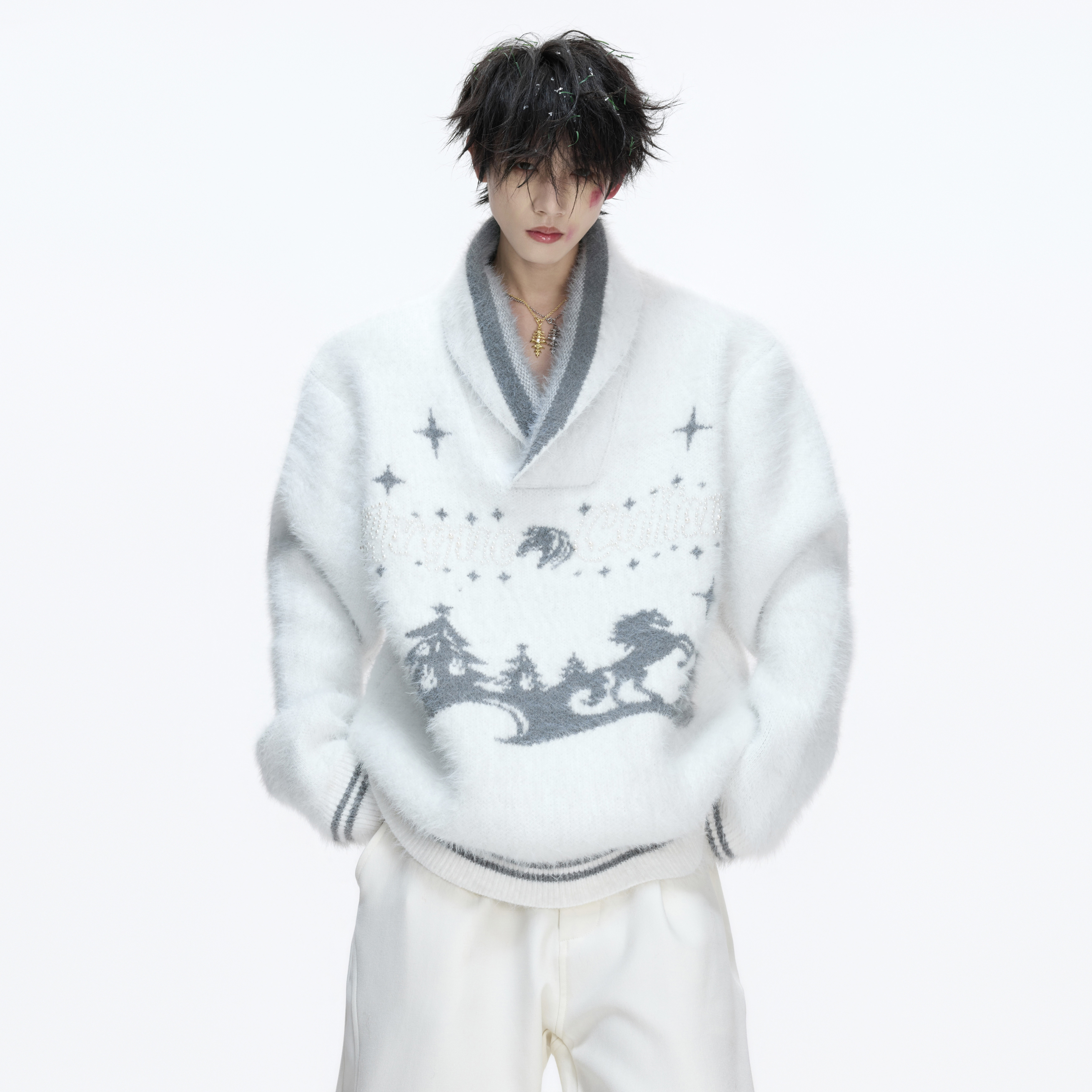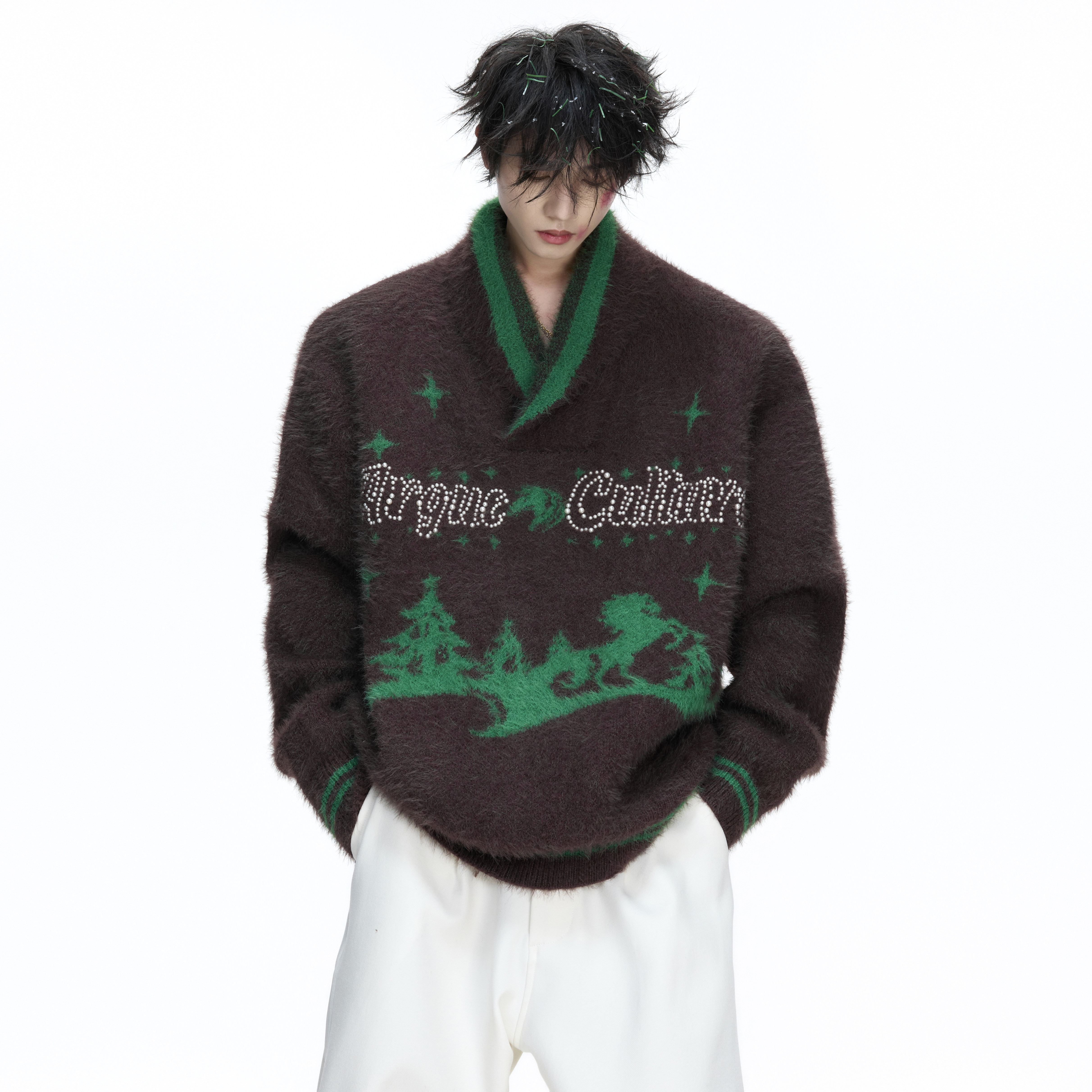 慵懒情侣毛衫 ArguECulturE冬麟 防貂毛V领新年圣诞毛衣厚实针织衫