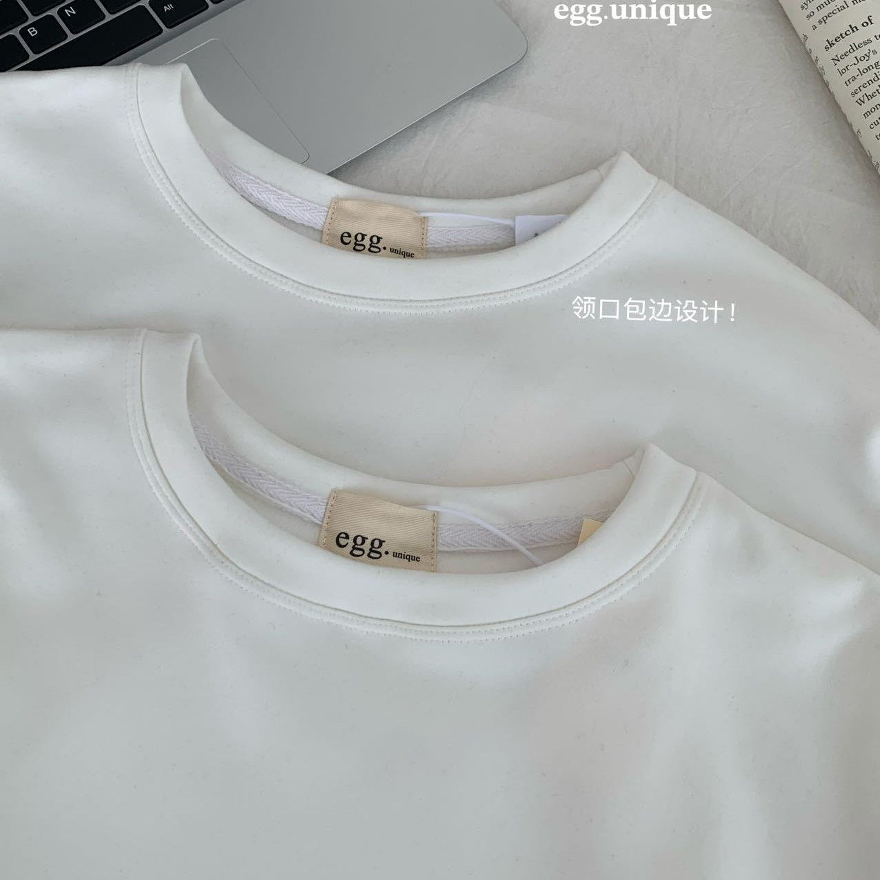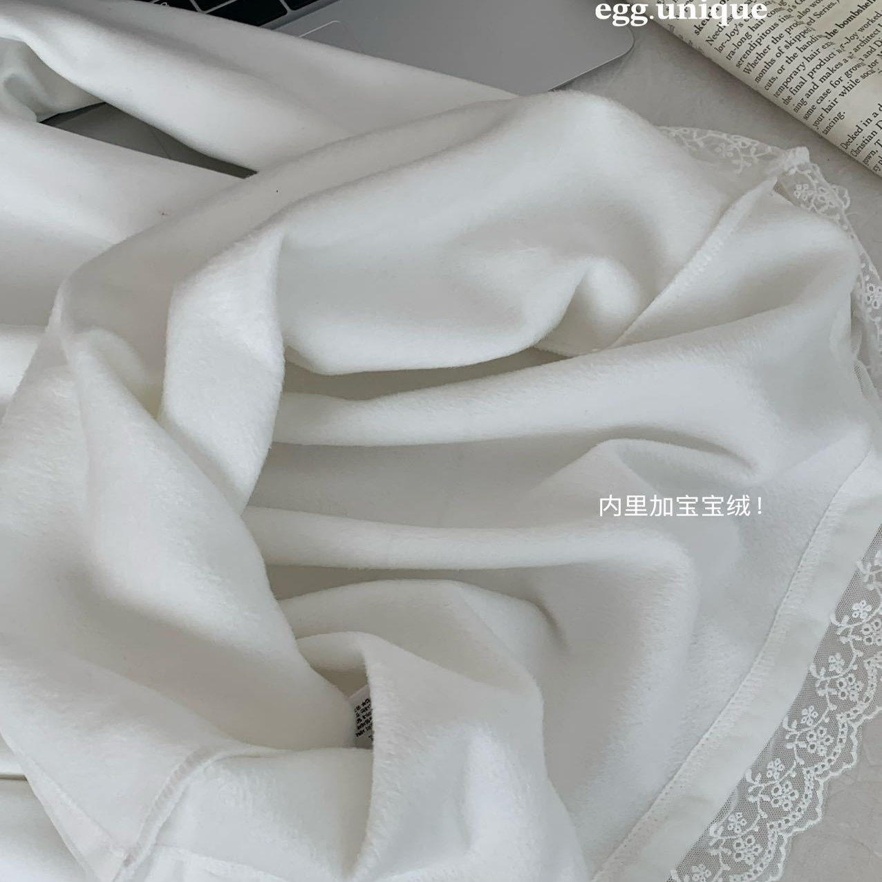 T恤打底衫 egg鸡蛋家2025秋冬新款 加绒蕾丝花边亲肤磨毛白色长袖