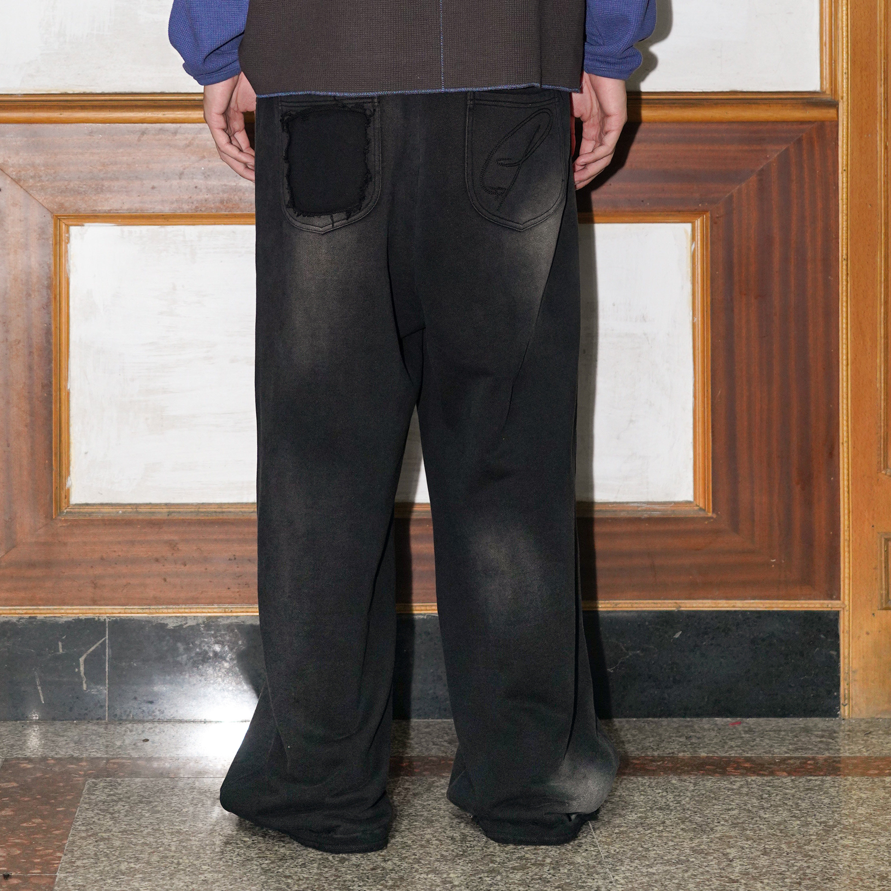 Veryrareme洗水低腰螺纹腰头抽绳卫裤 窄版