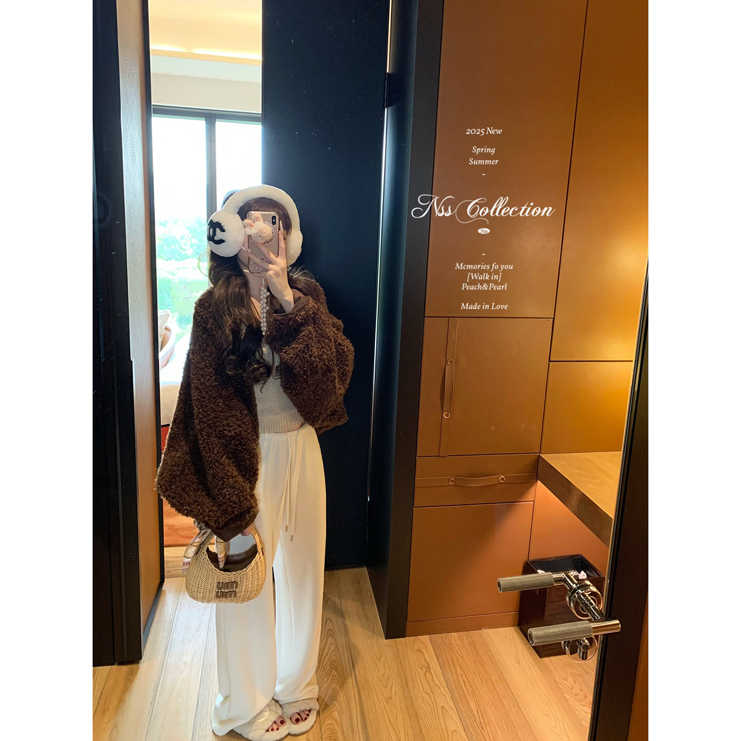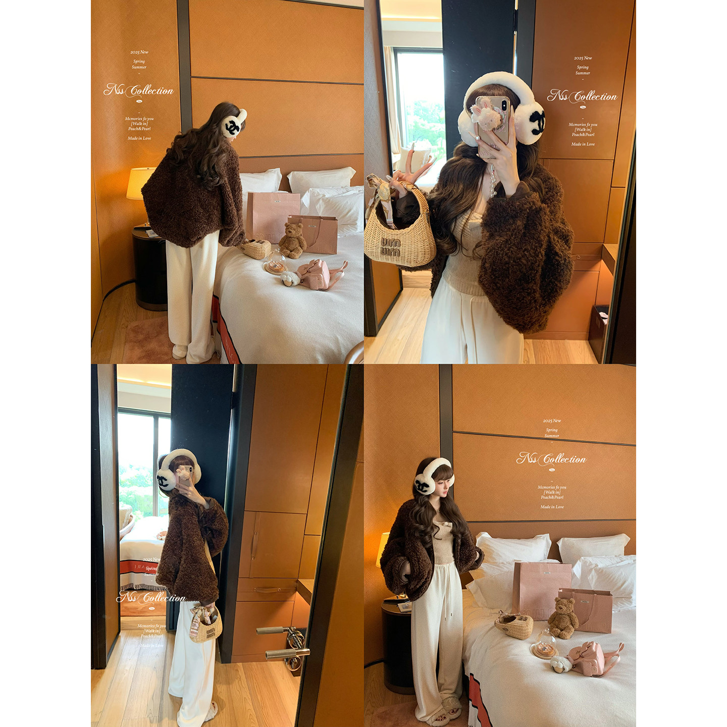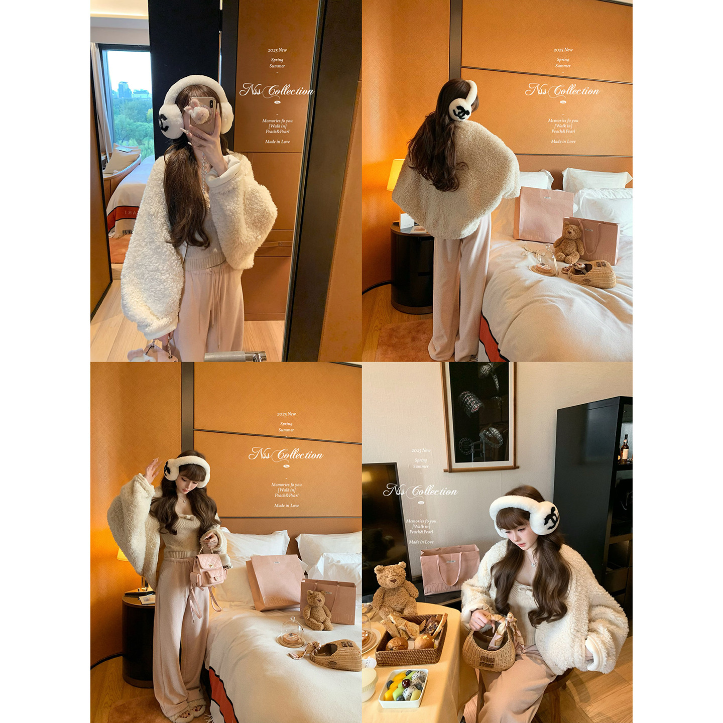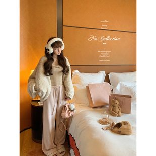 aaaaxbbb 奶白色环保皮草短外套韩系保暖皮毛一体上衣 新西兰半岛