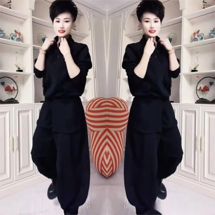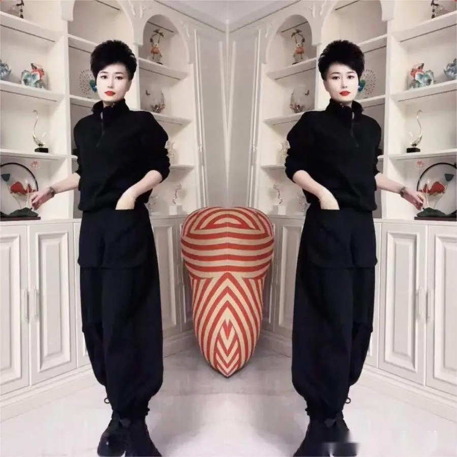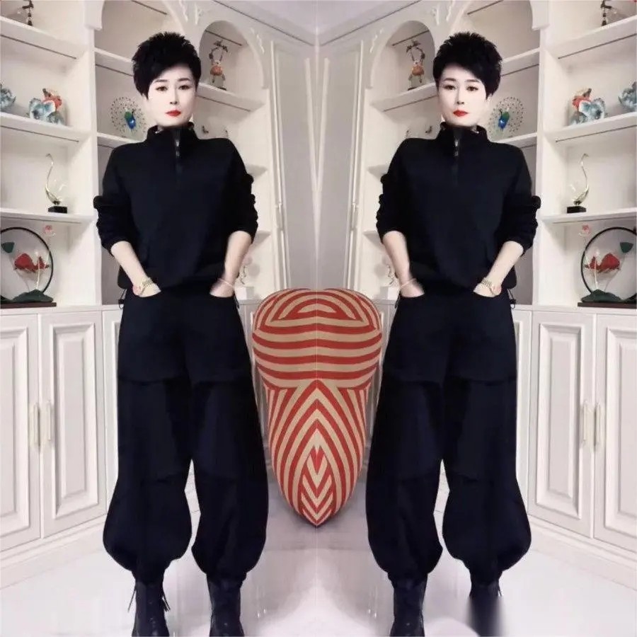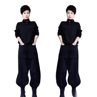 休闲百搭时尚 欧货潮牌半拉链卫捏褶松灯笼裤 新款 冬季 两件套爆 大码