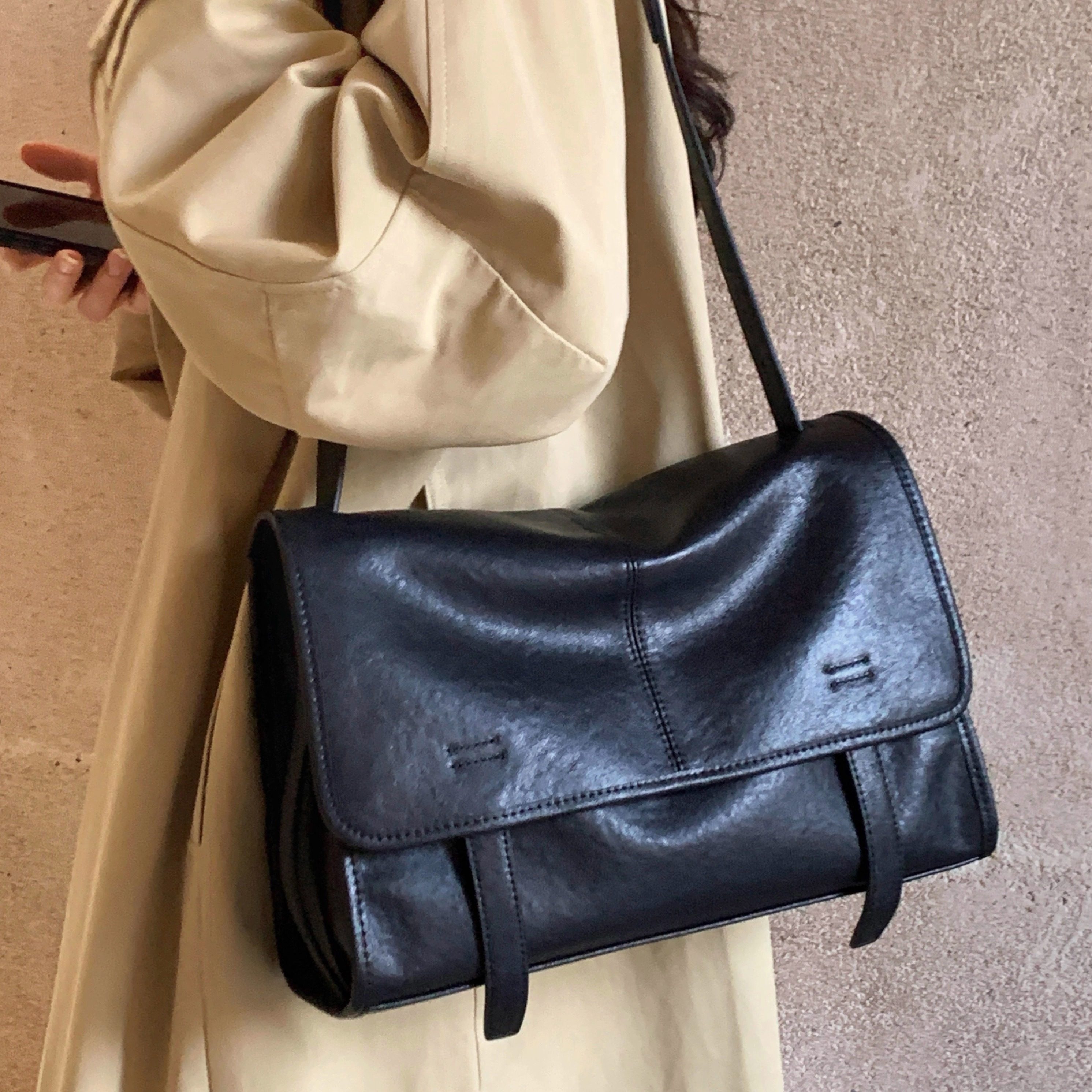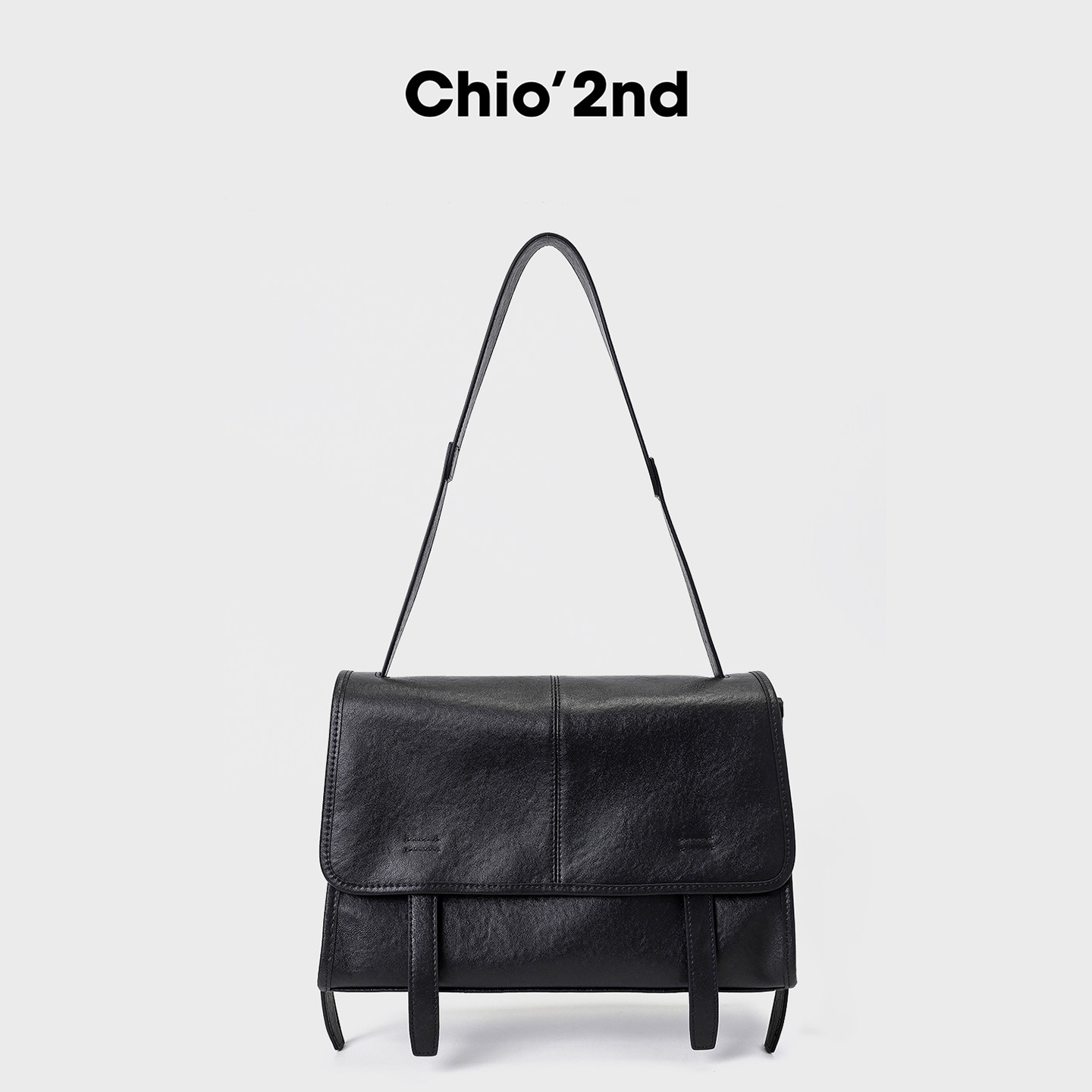 南风Chio2nd 头层牛皮暖阳学院邮差包包女黑色极简百搭单肩斜挎包