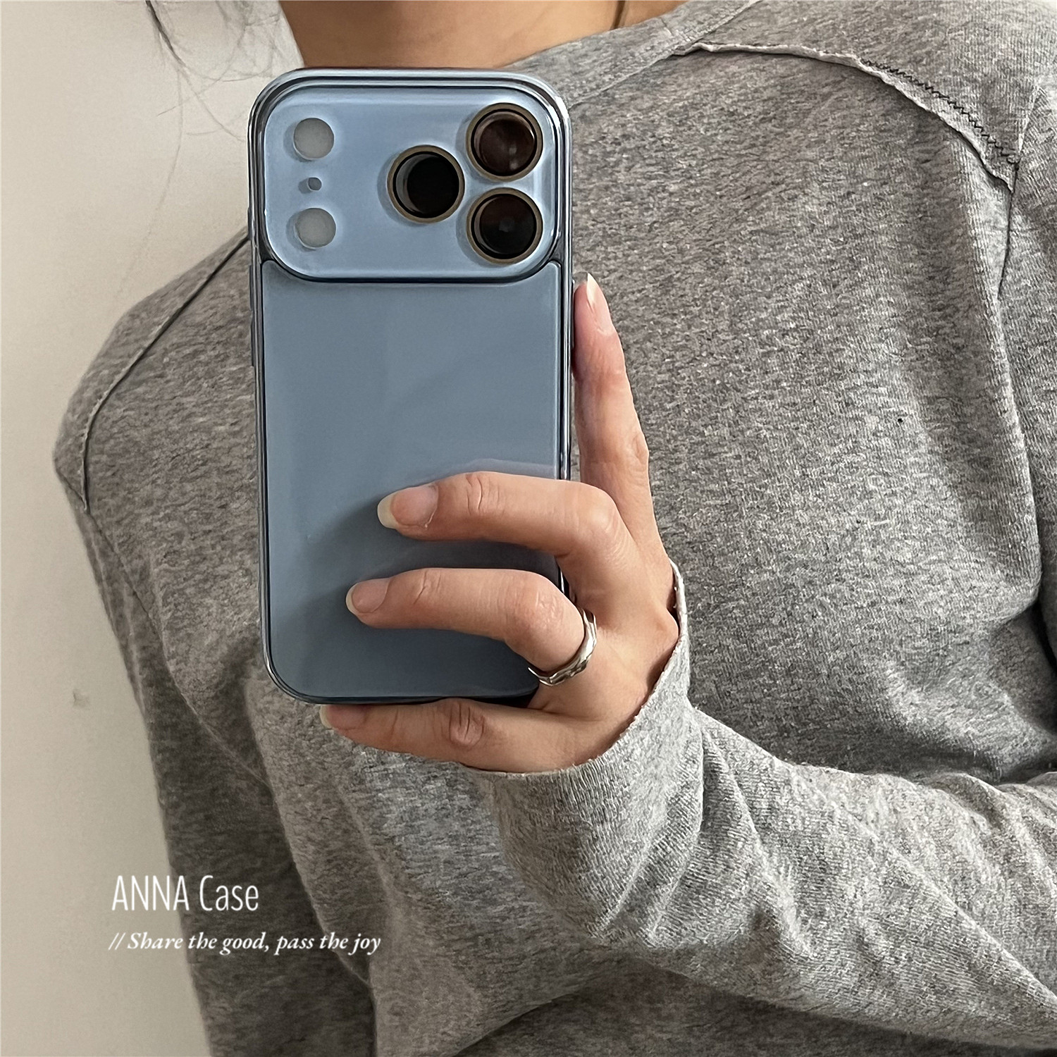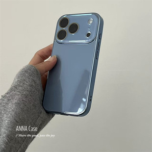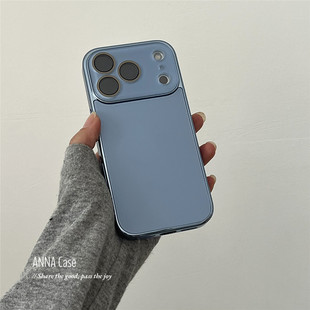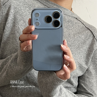 ANNACASE高级感清透冰川雾蓝玻璃适用苹果17promax手机壳iphone17电镀15pro新款 16全包16promax防摔保护套14