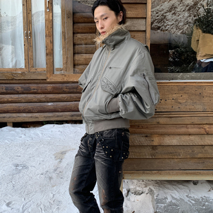 高街情侣面包服痞帅潮牌加厚棉衣 美式 黑色无帽立领羽绒服男款 冬季