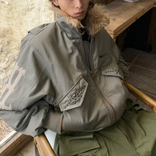 工装 复古夹棉加厚棉服女秋冬新款 派克服外套潮 胖mm美式 300斤大码