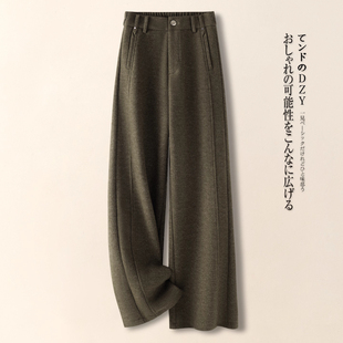 显瘦梨形身材垂感直筒裤 加绒胖mm宽松大码 子 女冬季 条纹阔腿休闲裤