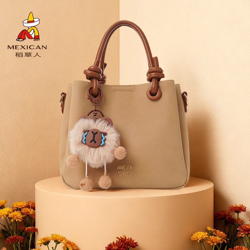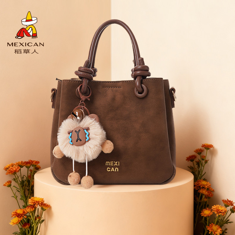 水桶包复古单肩包女士百搭斜挎包正品 稻草人包包女包2025新款 时尚
